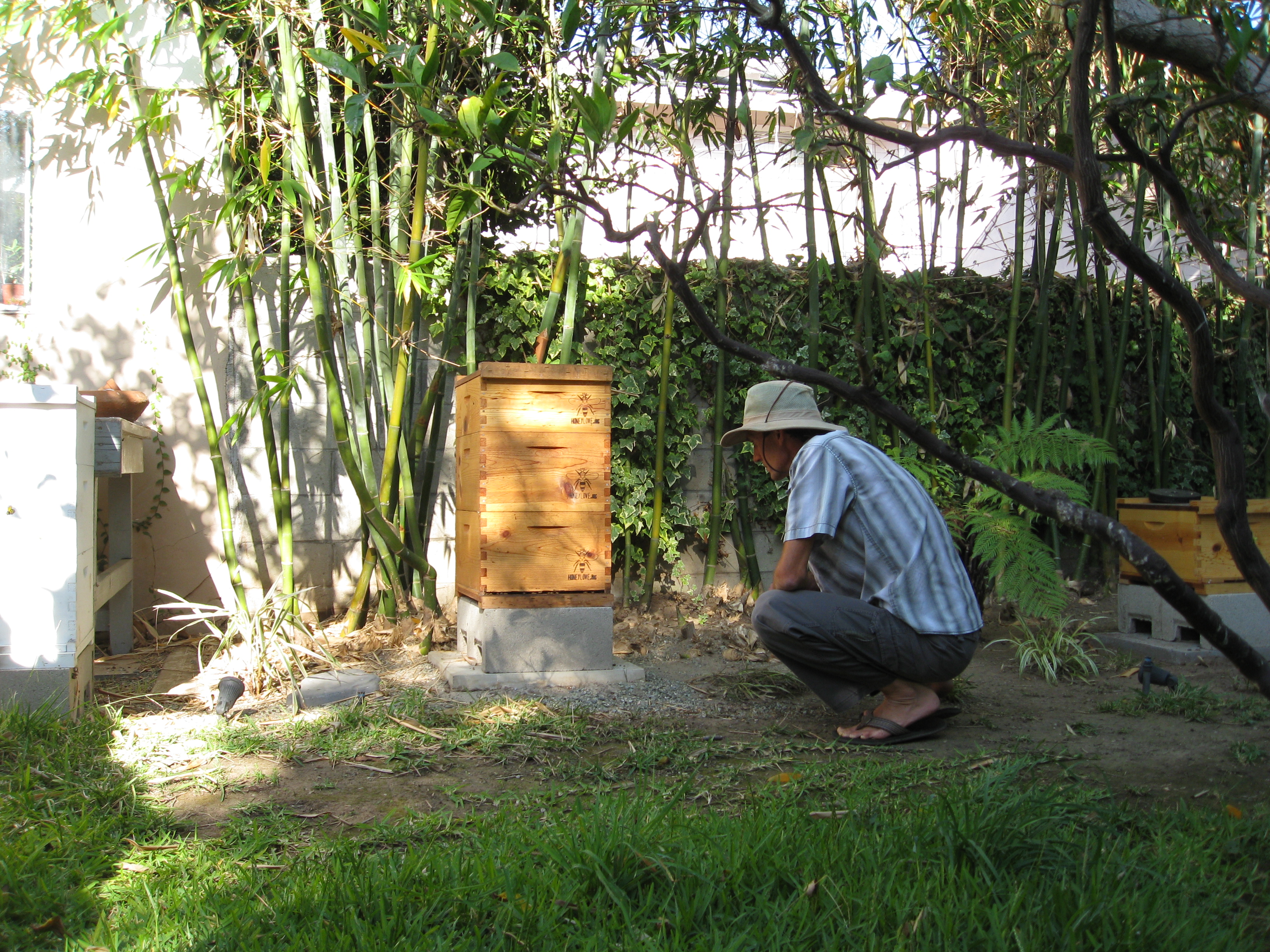 So back to that part about not wearing a suit. Granted, he lives up in the San Francisco Bay area, where apparently the bees are much more docile than in Southern California, and some people inspect their hives without protection. Michael guided us toward using our senses, taking time to connect with the bees (we are, after all, part of that organism) before going in. They send off signals that we can read, and observation is a key part of beekeeping.