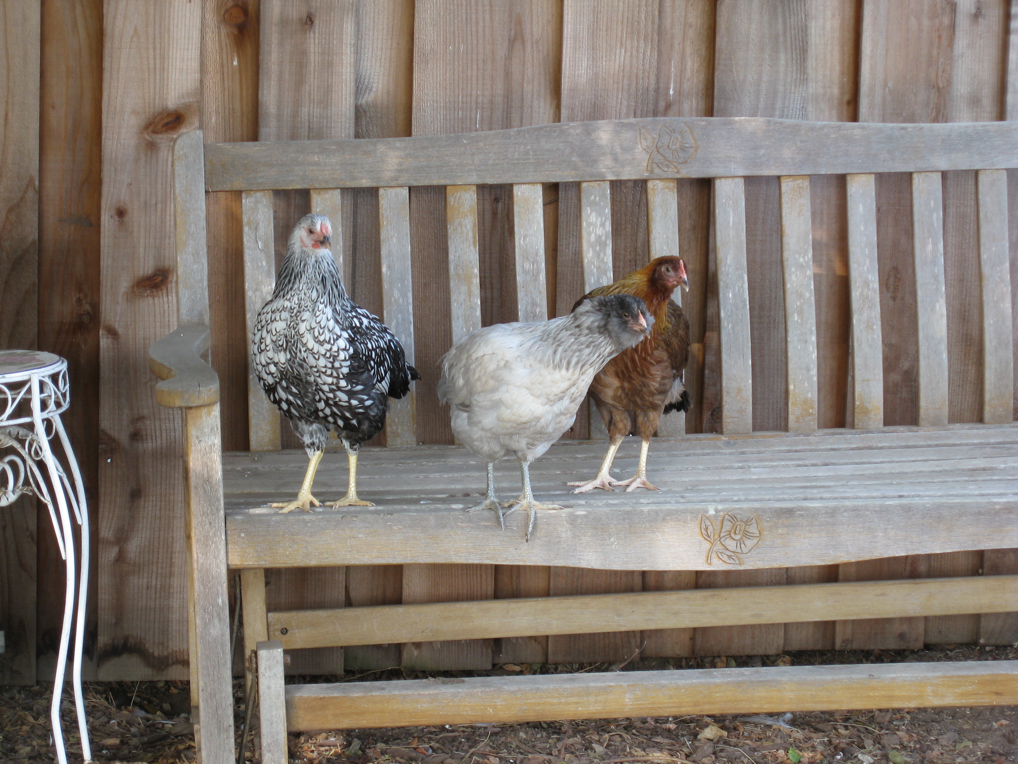Meet the girls (from right to left): Wilma the Wellsummer, Anabelle the Americauna, and Sylvia the Silver-laced Wyandotte.