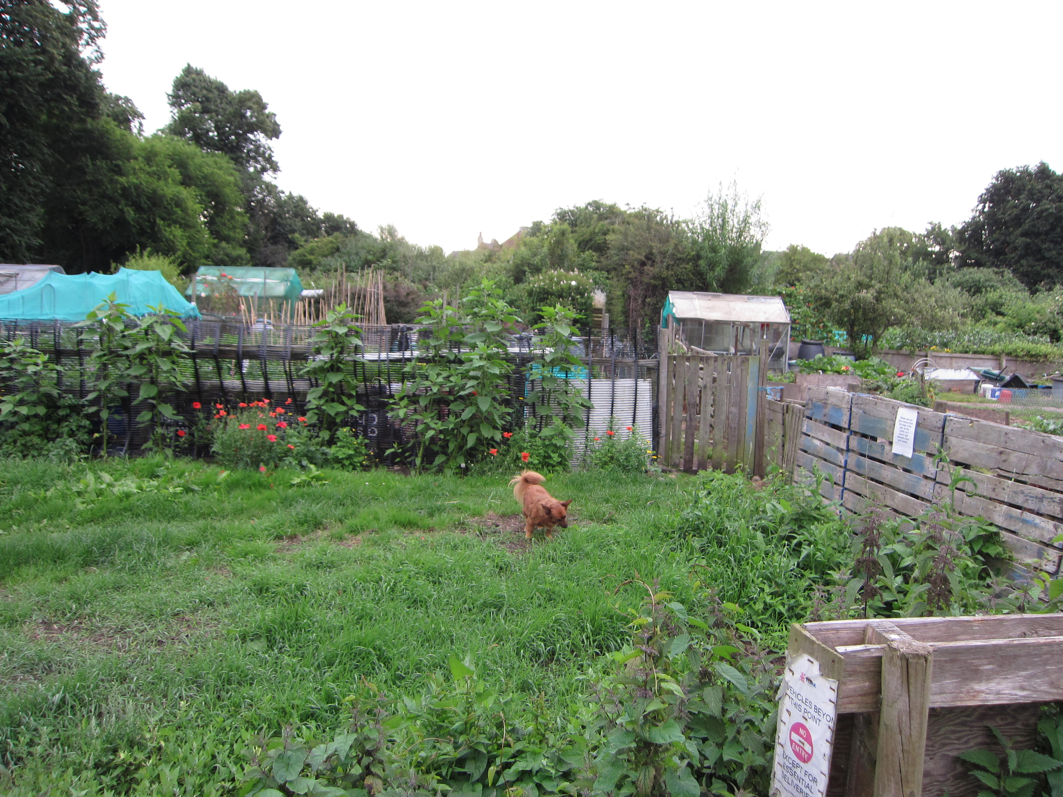 During our stay in York recently, we had the good fortune to stay in a guest room that overlooked a community garden. In fact, all the houses on this particular street abutted a huge community allotment, as they are called. Our host and her delightfully adorable dog, Peanut, took us on a walk through the garden one morning.