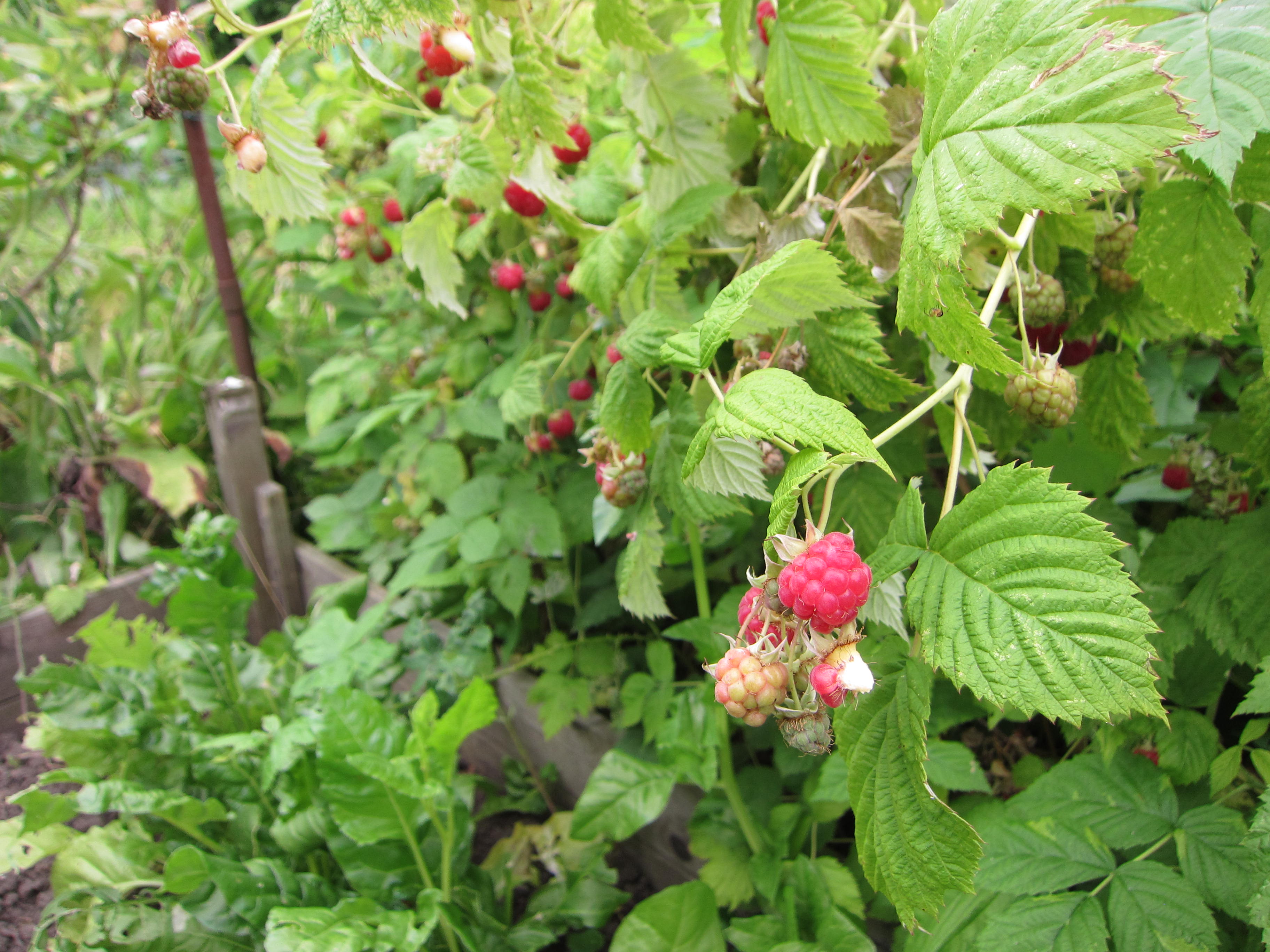 Brambles of raspberries lined pathways.