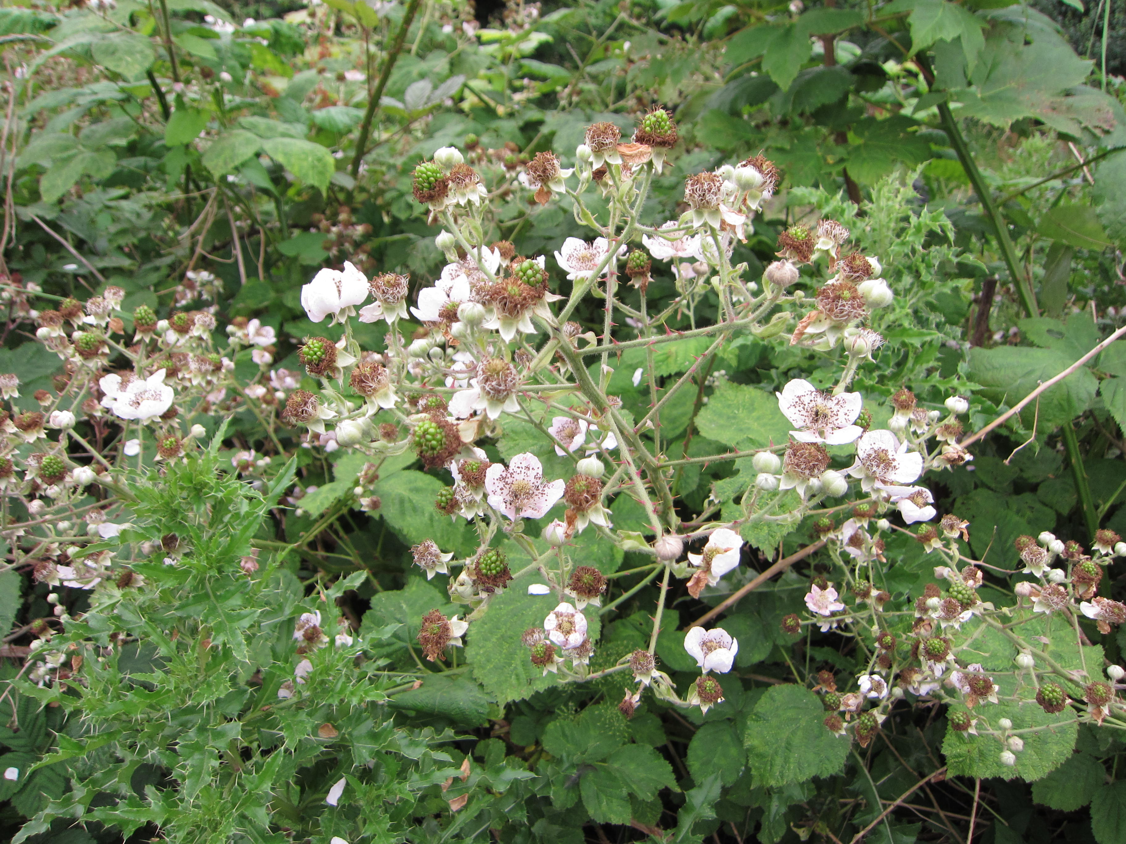 Brambles of black and raspberries lined pathways.