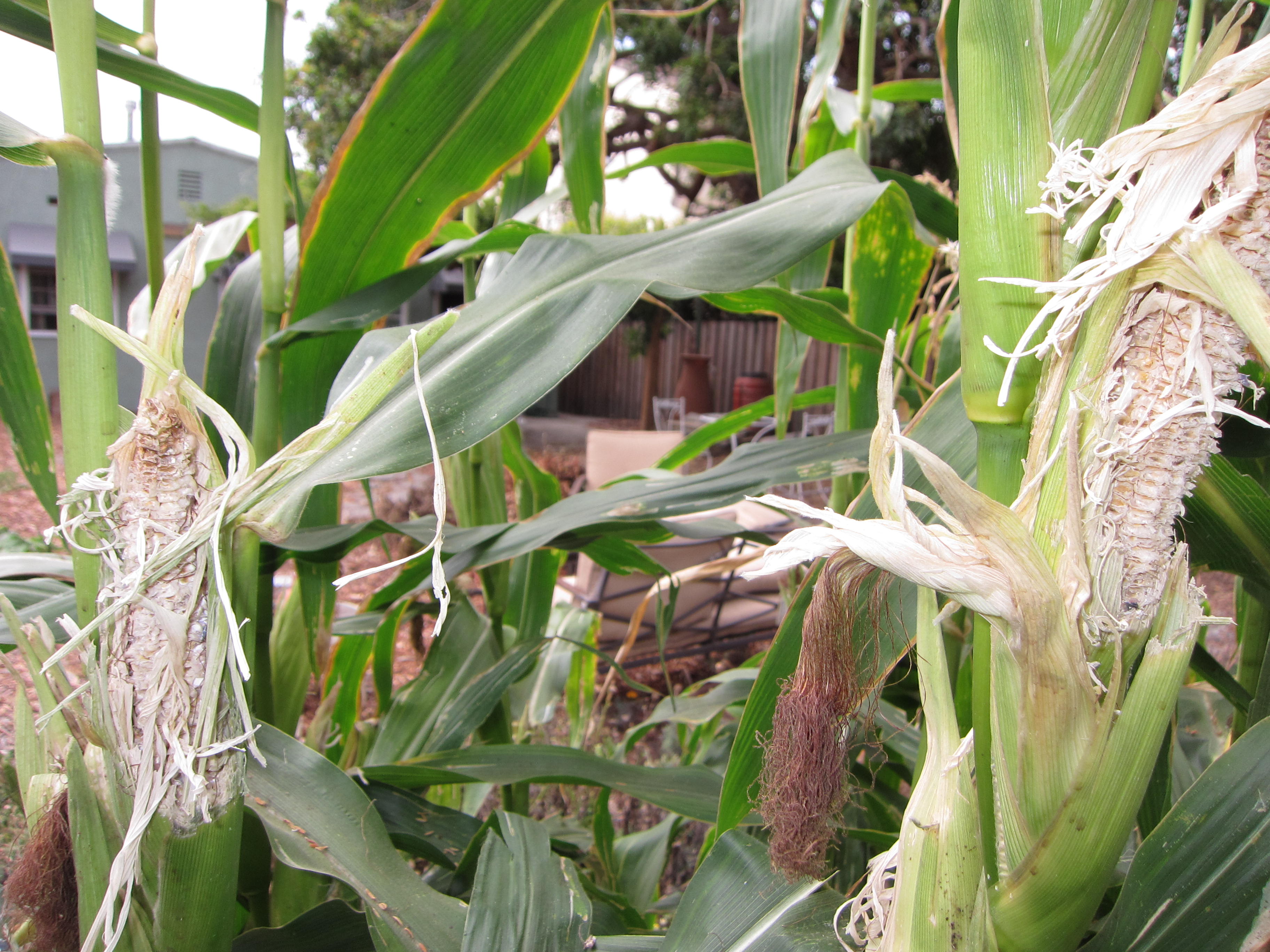 Even though we returned the husks to their upright condition, rats found their way in. They devoured most of the ears on the sides they were able to expose. Some, entire ears. Flames are shooting out of my own ears at the moment.