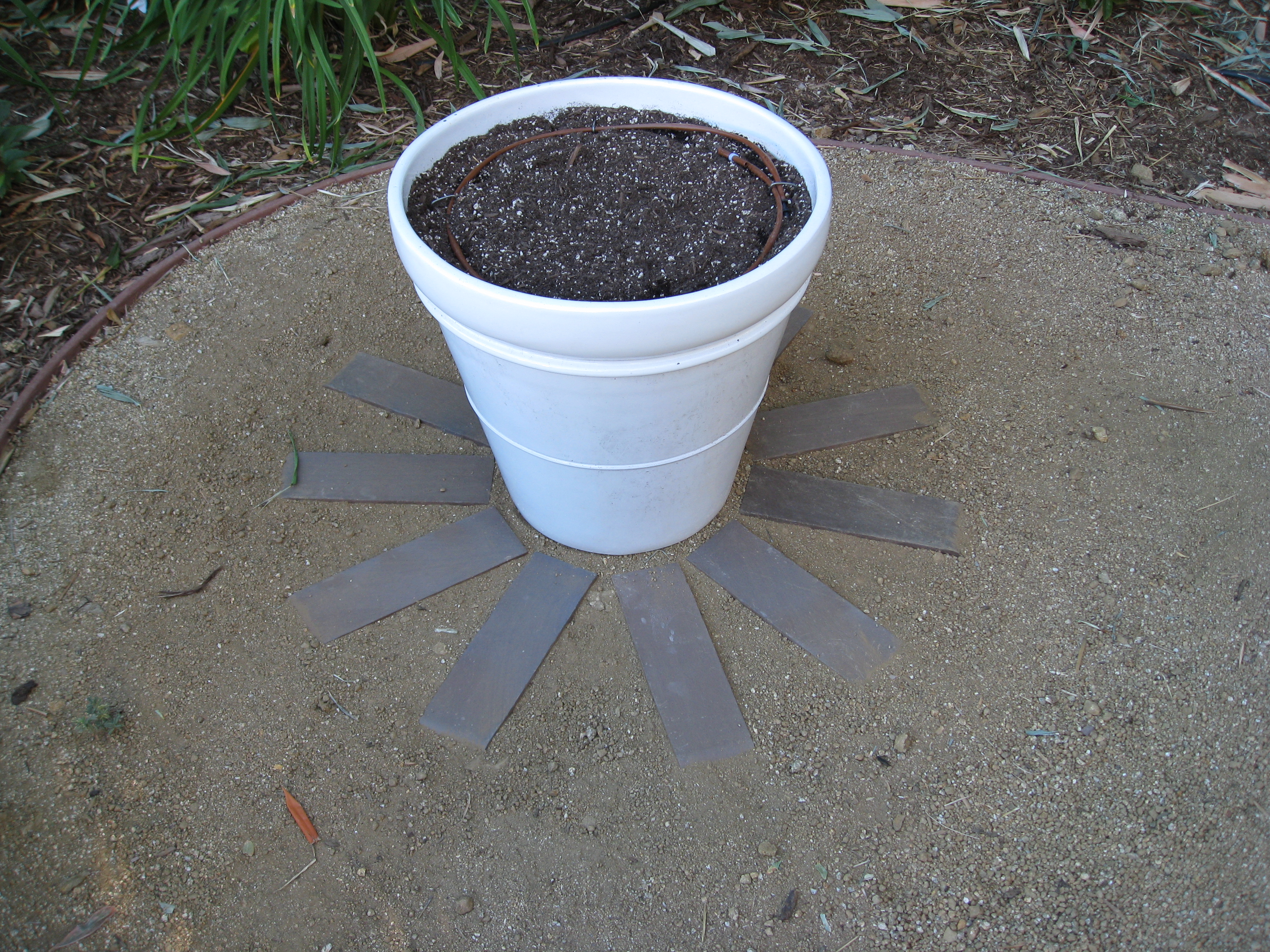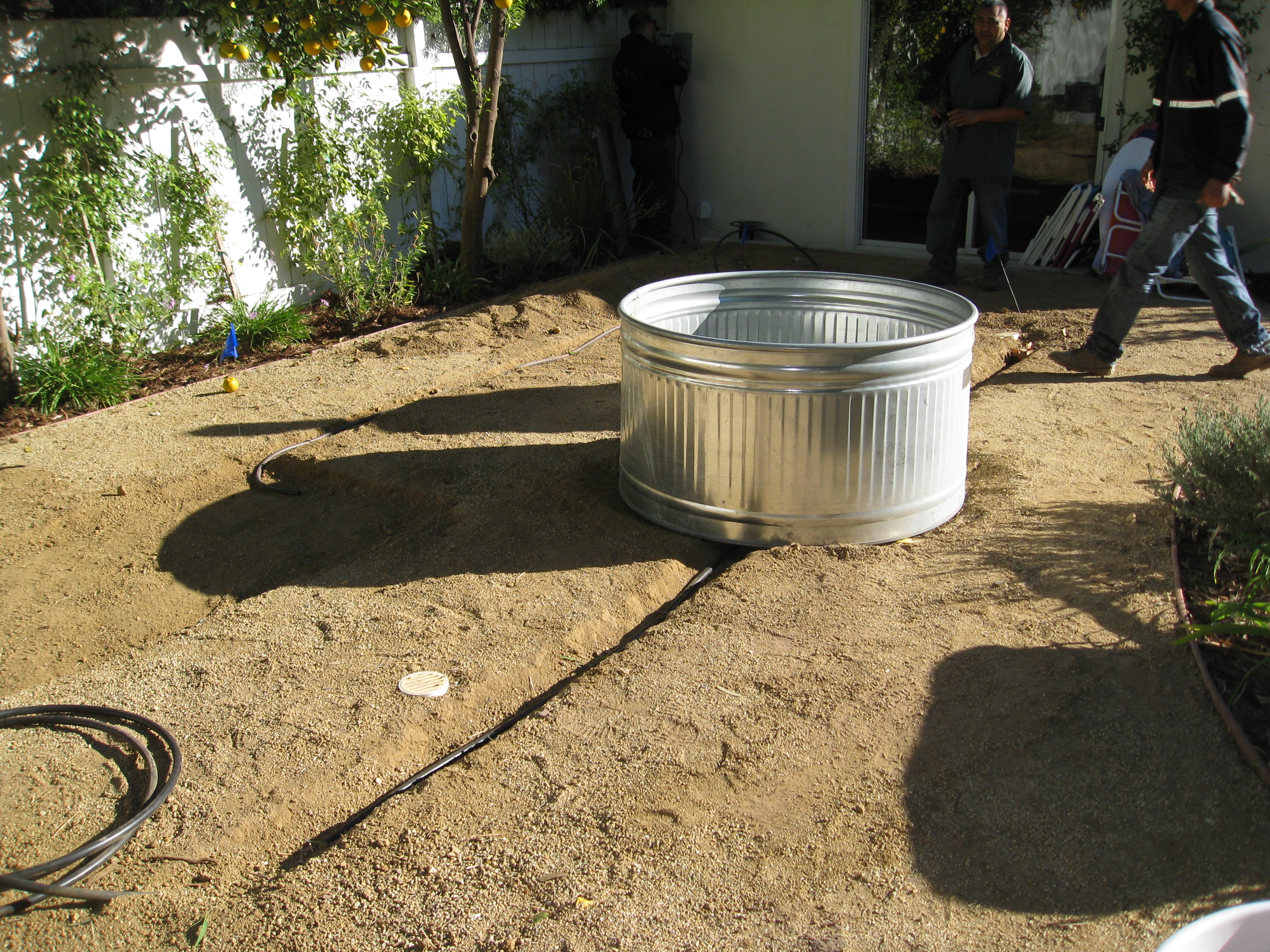 The homeowner wanted a rustic look, like their garden in Oregon, but instead of making the entire garden out of watering troughs (which would absolutely bake plant roots in scorching Sherman Oaks summers) we opted for one herb bed made from a 4-foot diameter trough instead.
