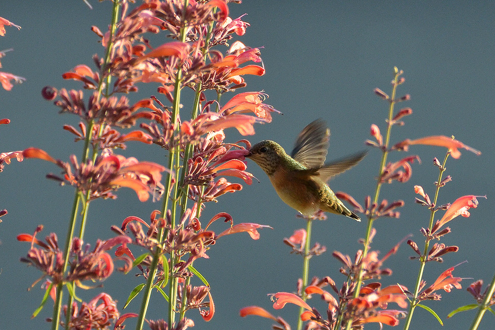 ‘Glowing Embers’ is a licorice mint hyssop, which is also aptly known as “hummingbird mint.” The licorice-scented foliage and red-orange flowers are a delight, and hummingbirds and butterflies love the rich nectar. ‘Glowing Embers’ has a compact, rounded shape, and is very heat and drought tolerant once established. It also thrives in containers – perfect for a sunny deck or patio. The classic Agastache rupestris (Licorice Mint Hyssop) has smoky orange and lavender flowers that pollinators love. Agastache rupestris loves hot and sunny conditions in well-drained soil. Both of these agastache varieties are available at HighCountryGardens.com.