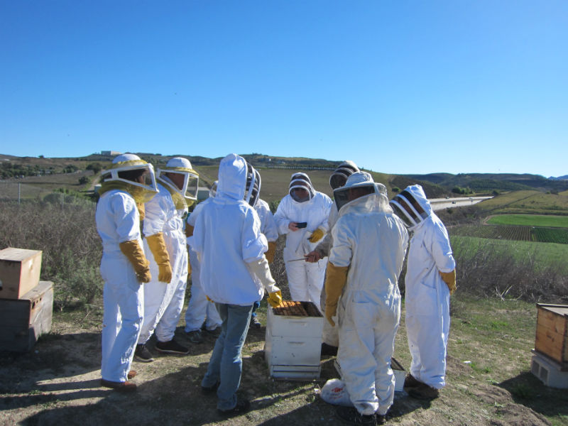 Rob and Chelsea McFarland of Honeylove.org house upwards of 15 rescued hives in the hills of Moorpark, CA. Each month, they invite newbies and fellow bee keepers to come learn how to inspect the hives. An experience not to be missed.
