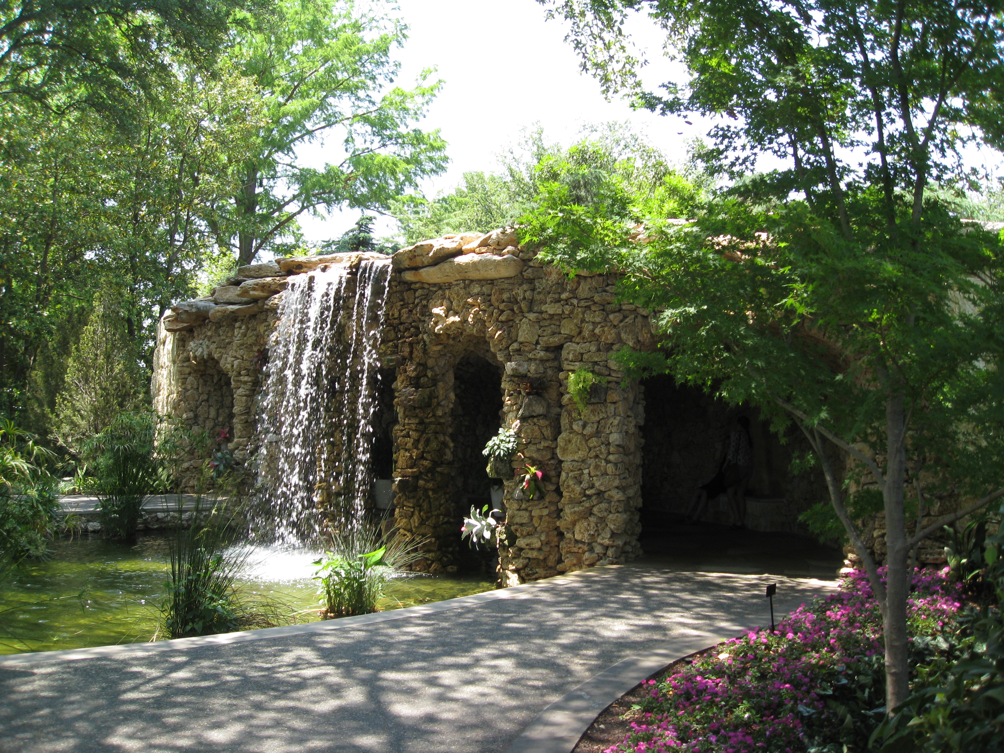 We also saw more Japanese maples that we ever thought possible. I would never have expected that in Texas. The other prominent focus of the Arboretum was the water feature. So many fountains and waterfalls throughout the gardens, representing much of Dallas itself, I suppose. Most corporate buildings downtown had fountains in front of them.