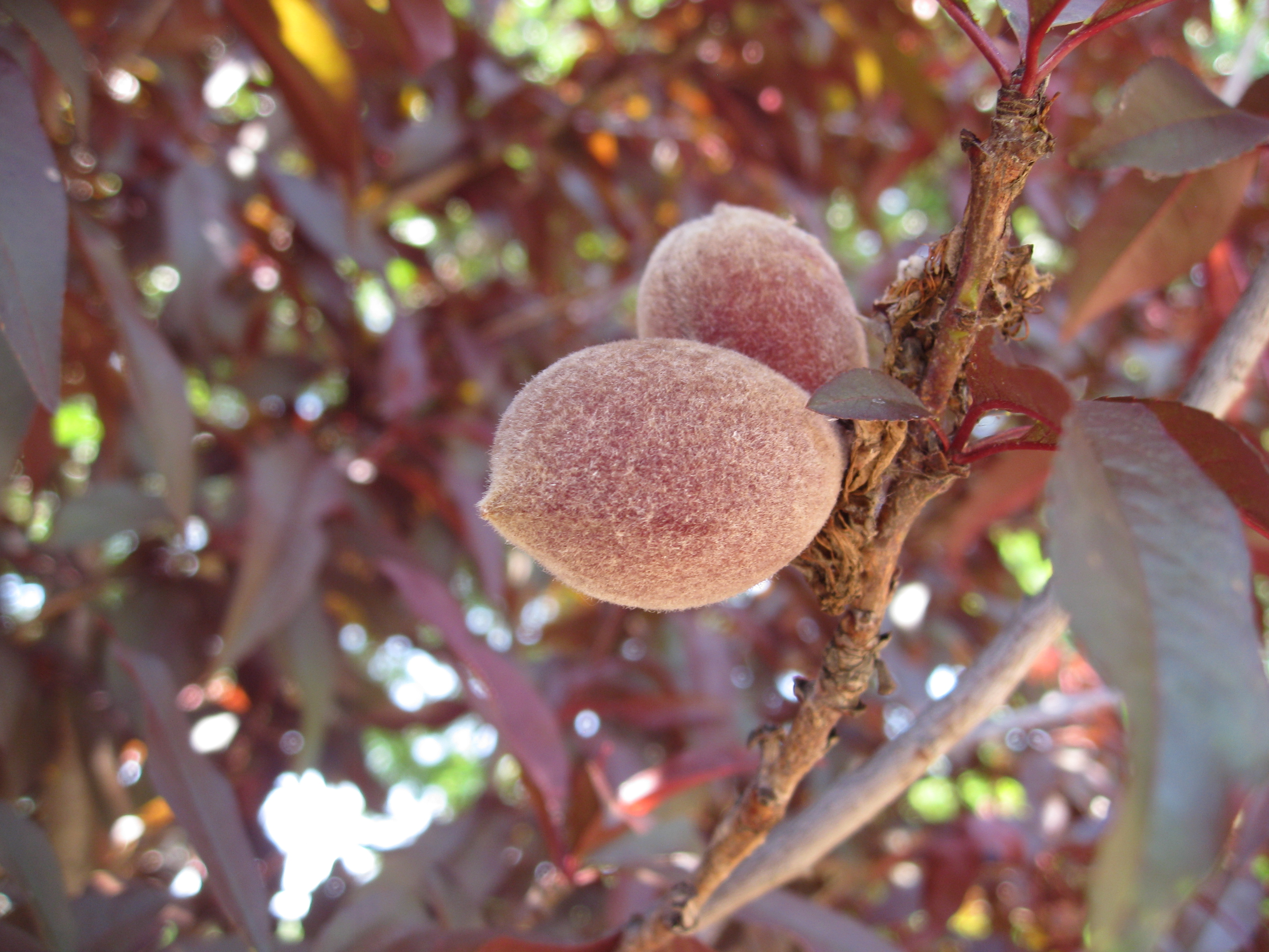 We think this is a Red Leaf Indian Peach, which we'd never seen before.