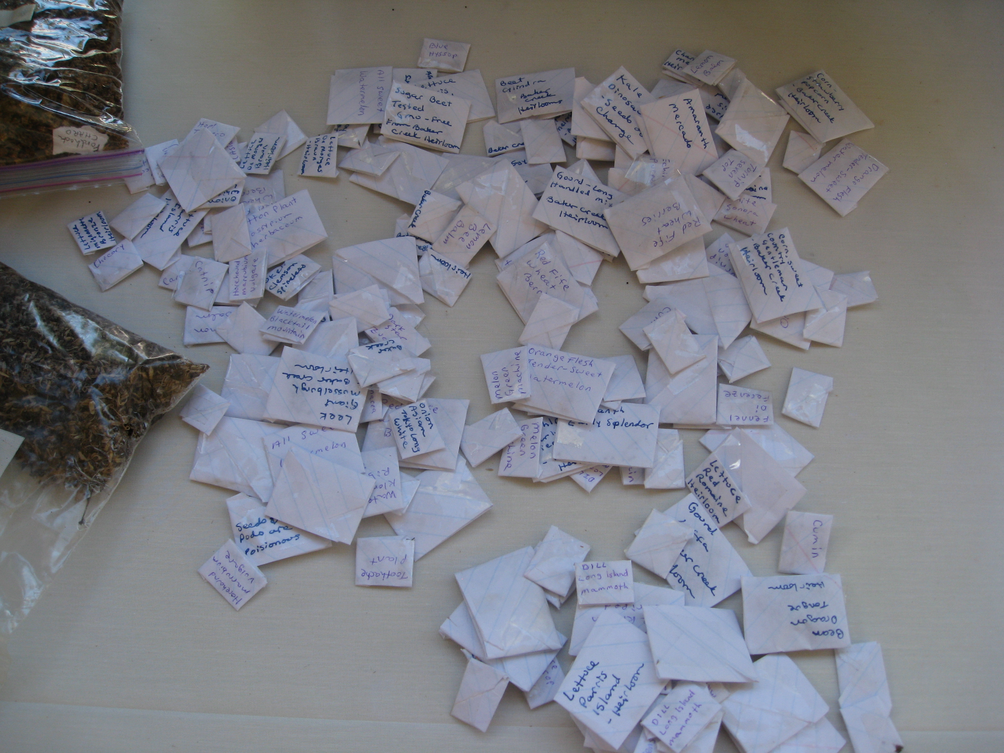 Tiny packets of more than 100 different varieties of seeds from her garden.