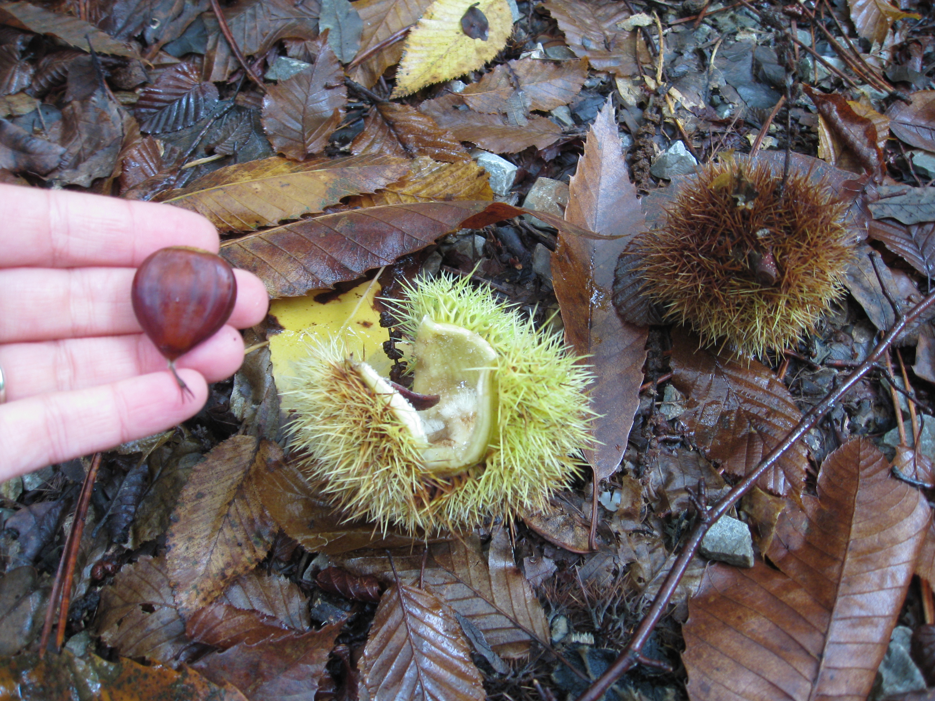 We might have smuggled a few home to eat, not grow. Our soil isn’t acidic enough for chestnut trees.