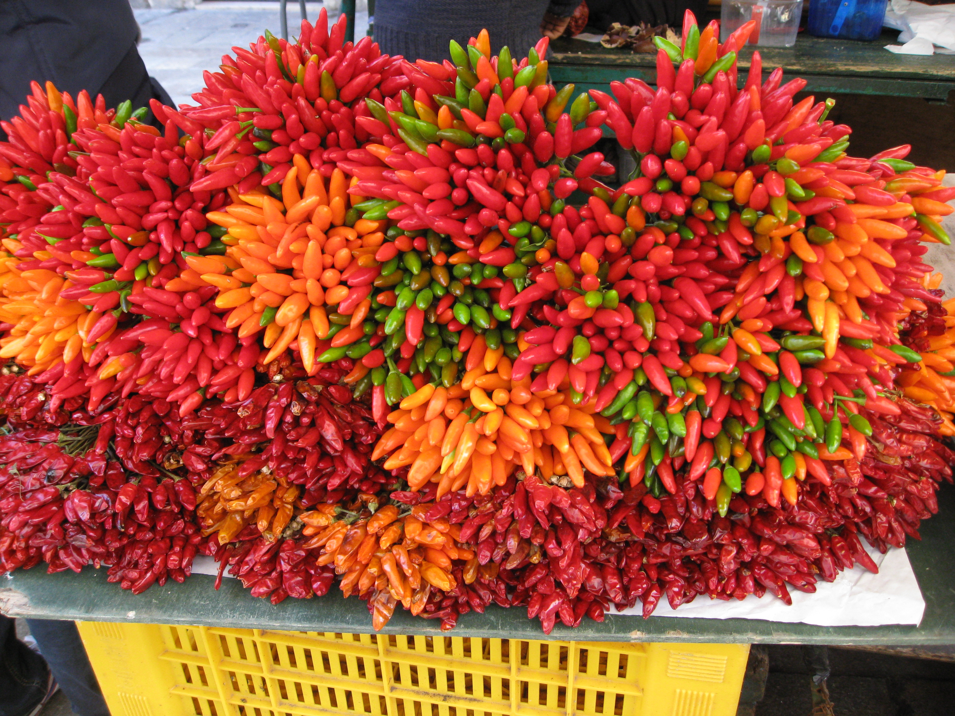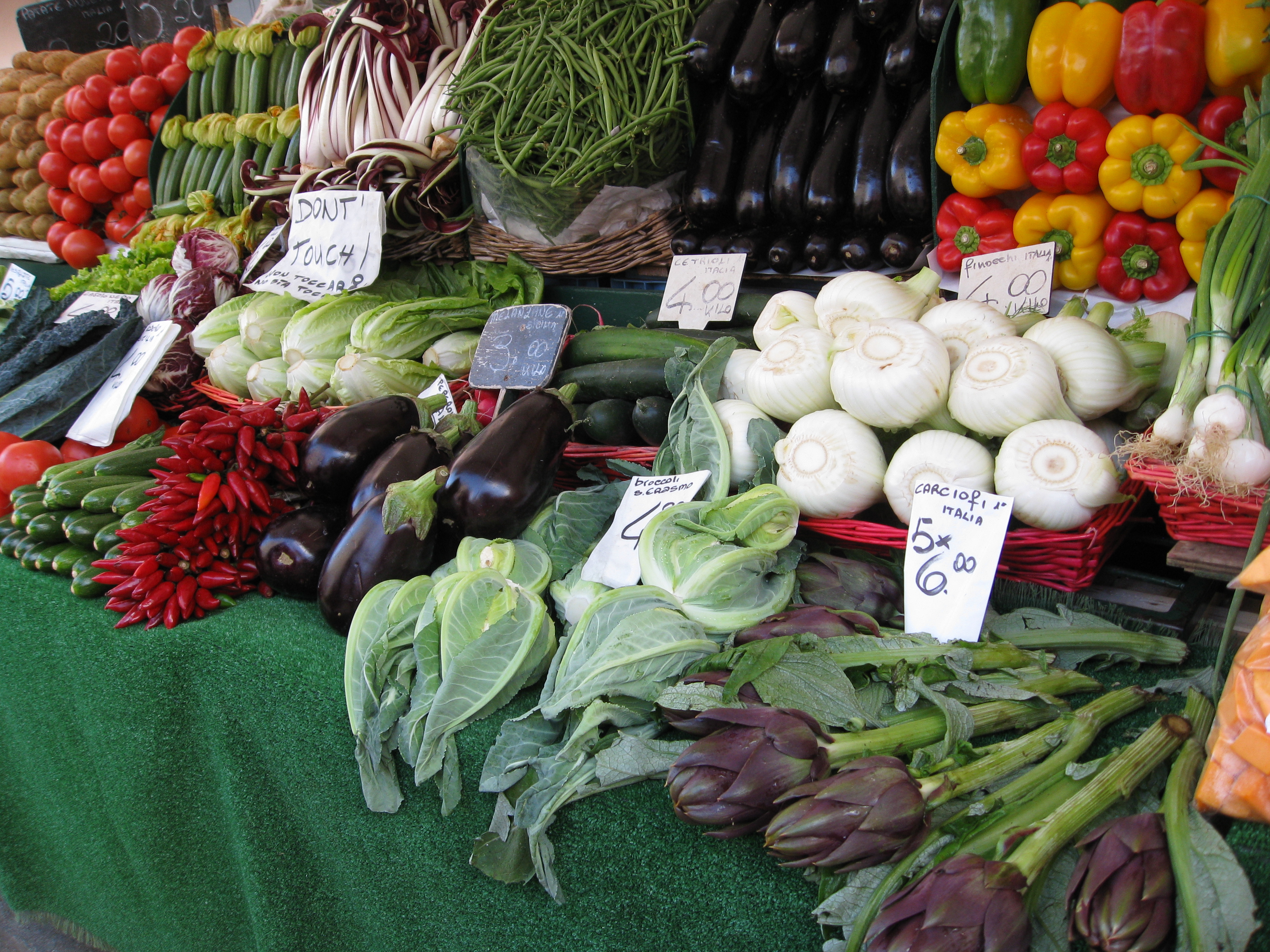 There’s nothing quite so exotic as a farmers market in a foreign country. You get to see the staples of the local diet on display. Here in the US, we see peppers and eggplant and tomatoes just like in Italy, but the varieties are different and there’s so much more.