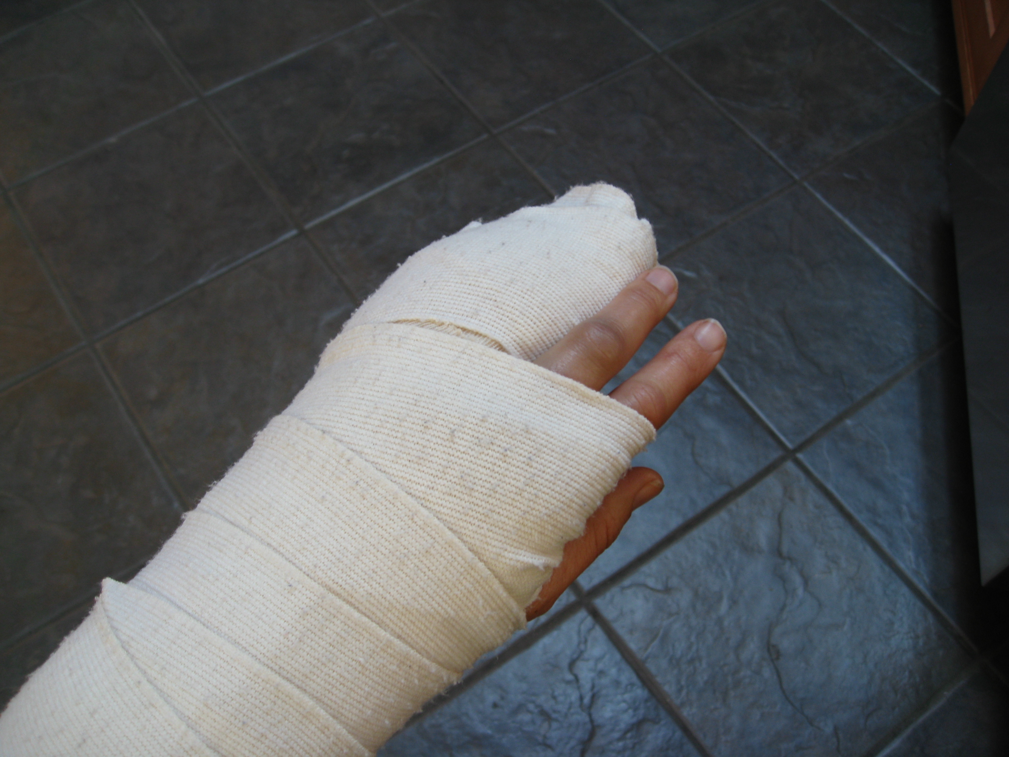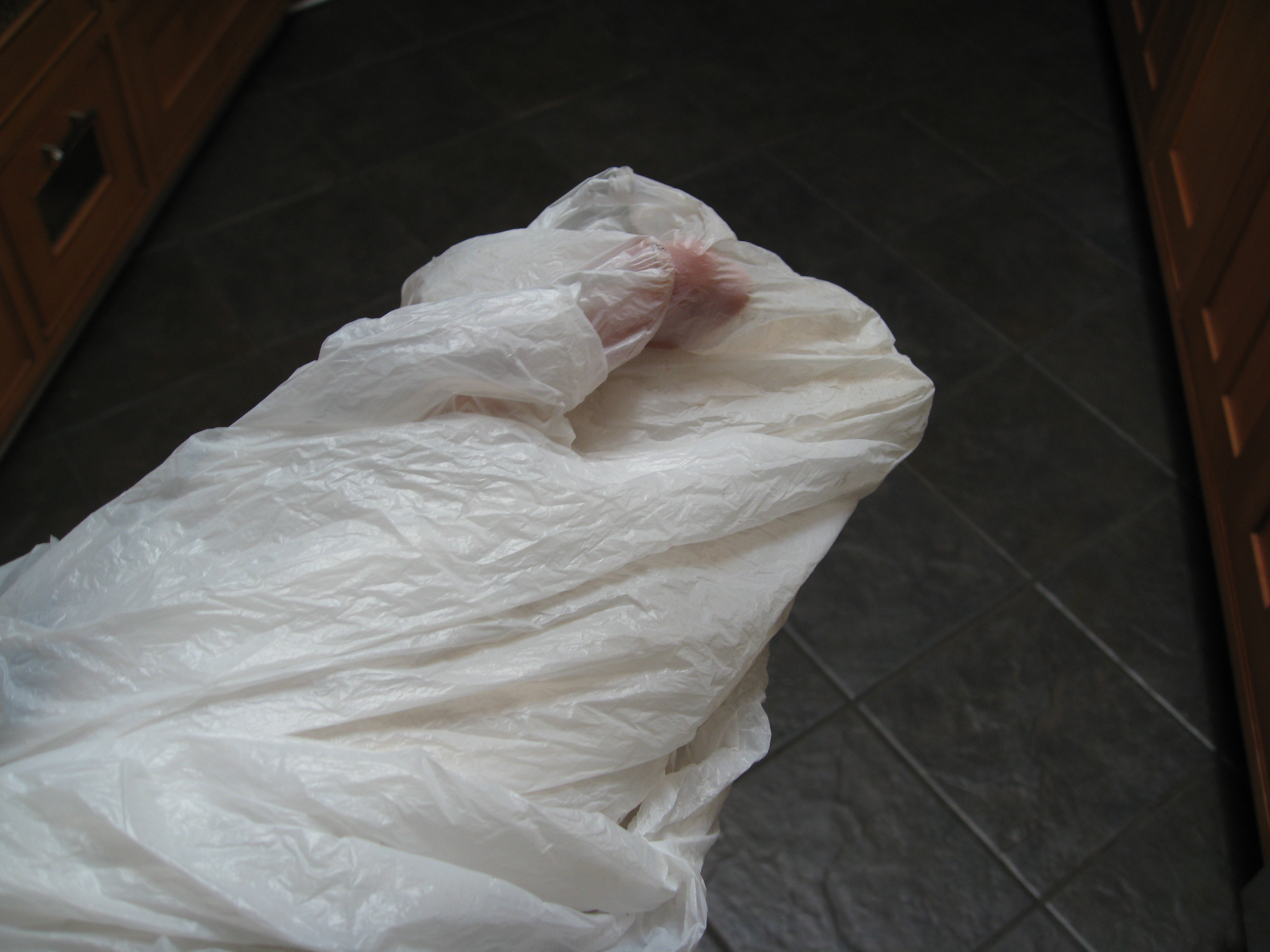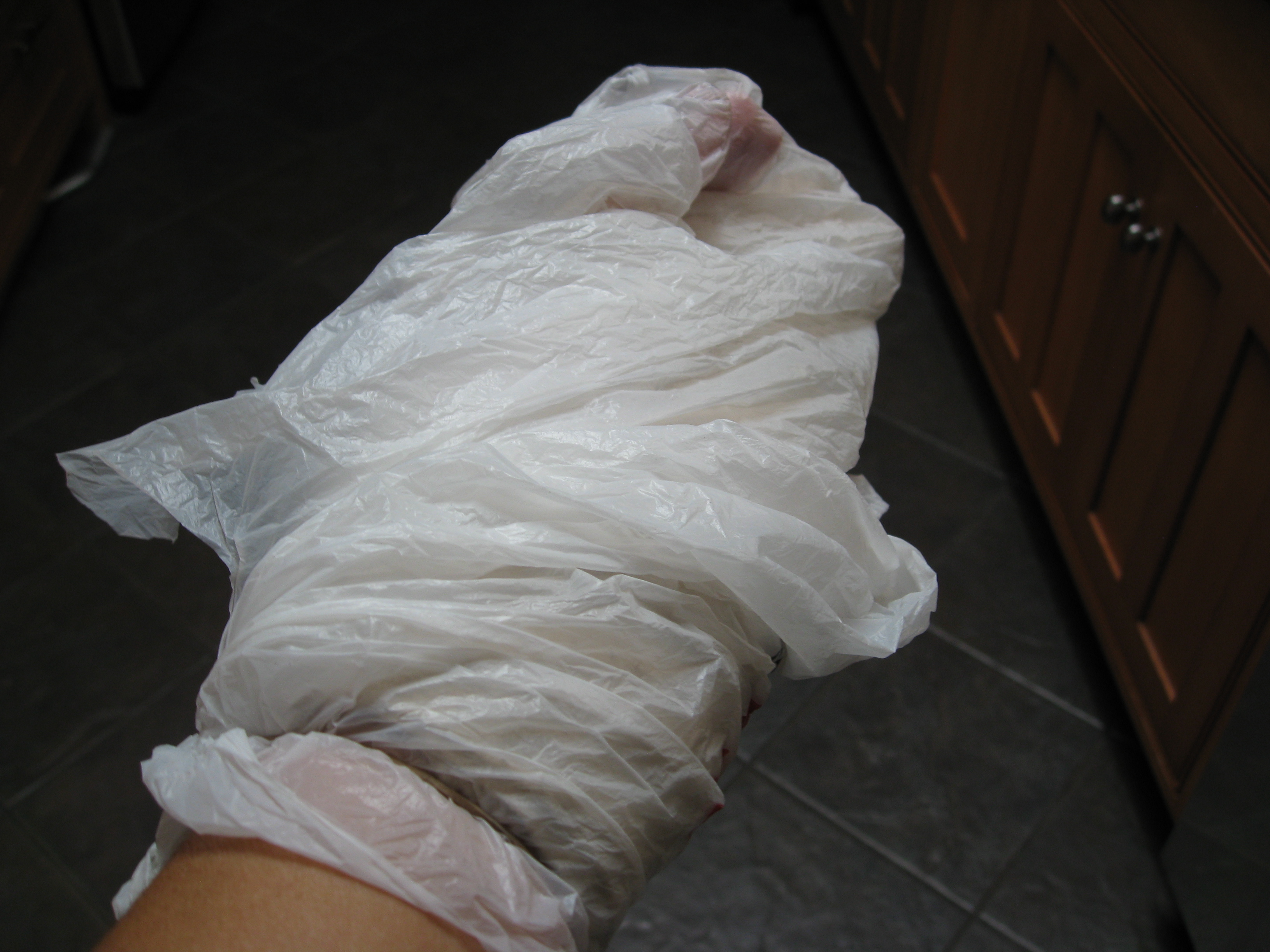 Take Cover – now that the pain subsided, the splint is just a nuisance. I’m not allowed to get it wet or dirty. A bit of a hazard to my profession, really. Enter the handy plastic bag.