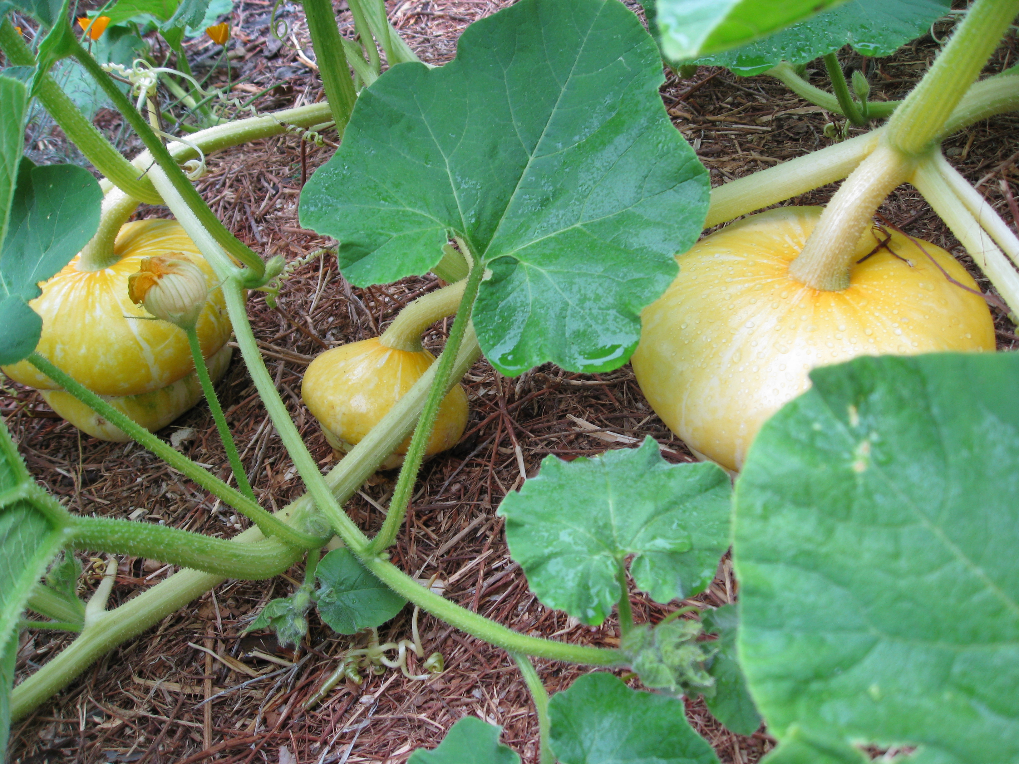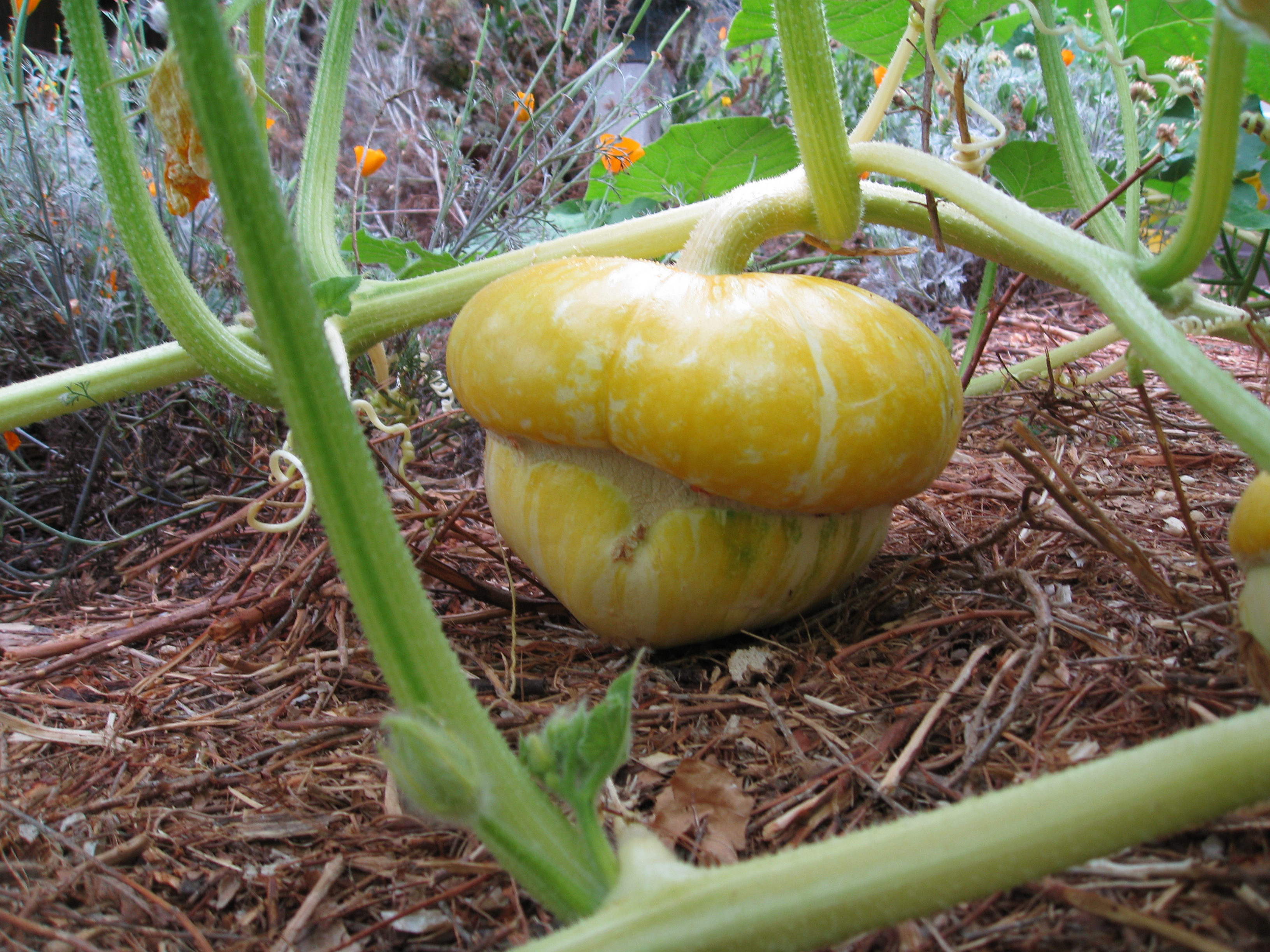 As with all squash, these plants are susceptible to powdery mildew and other fungal infections, as well as squash borers. Luckily we don’t have squash borers here, but we have fungal issues in spades. We cut off affected leaves at first sight of disease. Apparently you can bury the vines to establish secondary root feeders, and increase fruit size. We’re letting nature take its course.