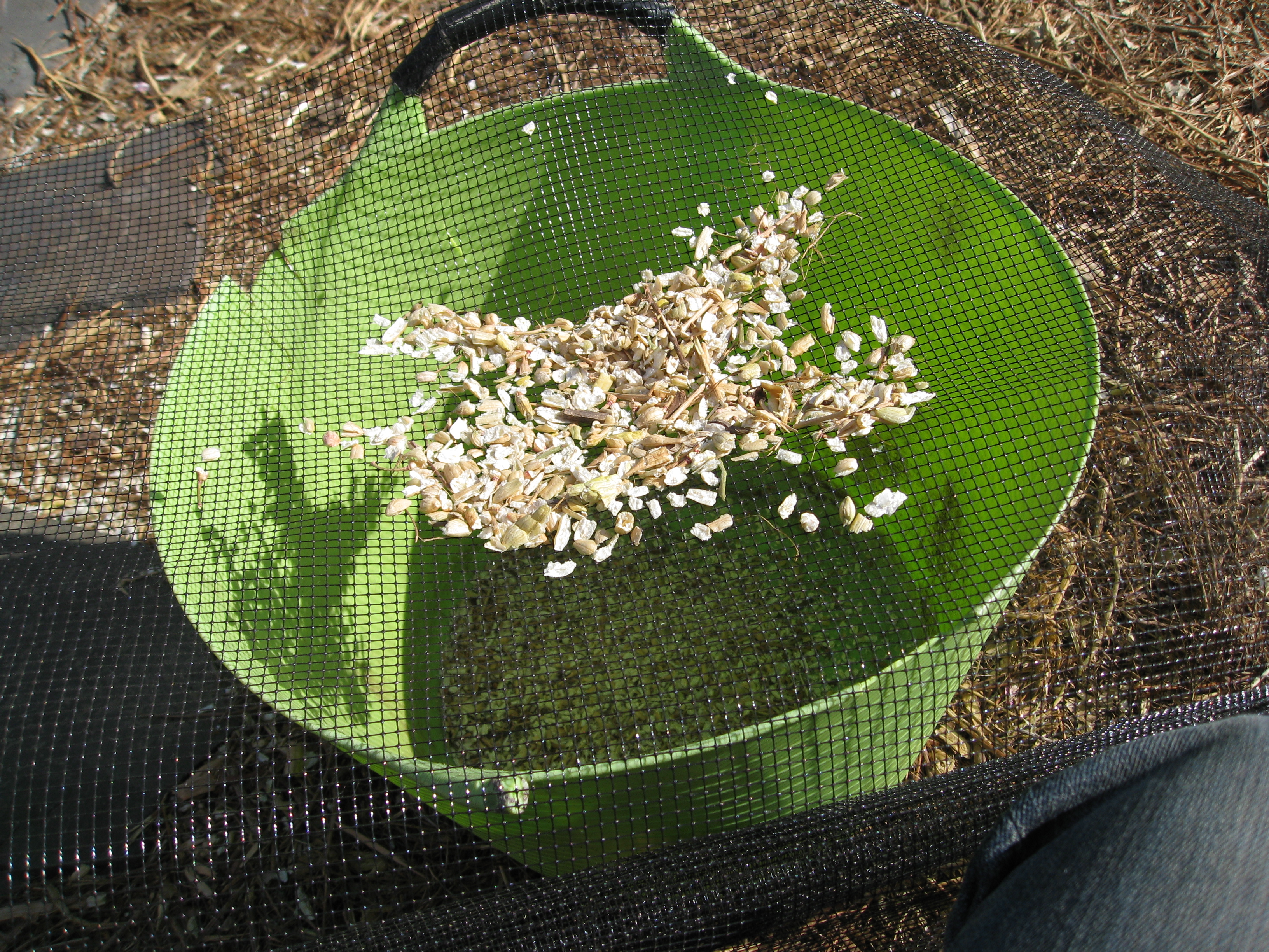 We dorkfully started winnowing (step 3) before taking this important step of screening out the big pieces, and ended up with half the seeds on the ground in a strong wind…which reminds us of an important tip we’ll share in a moment.
