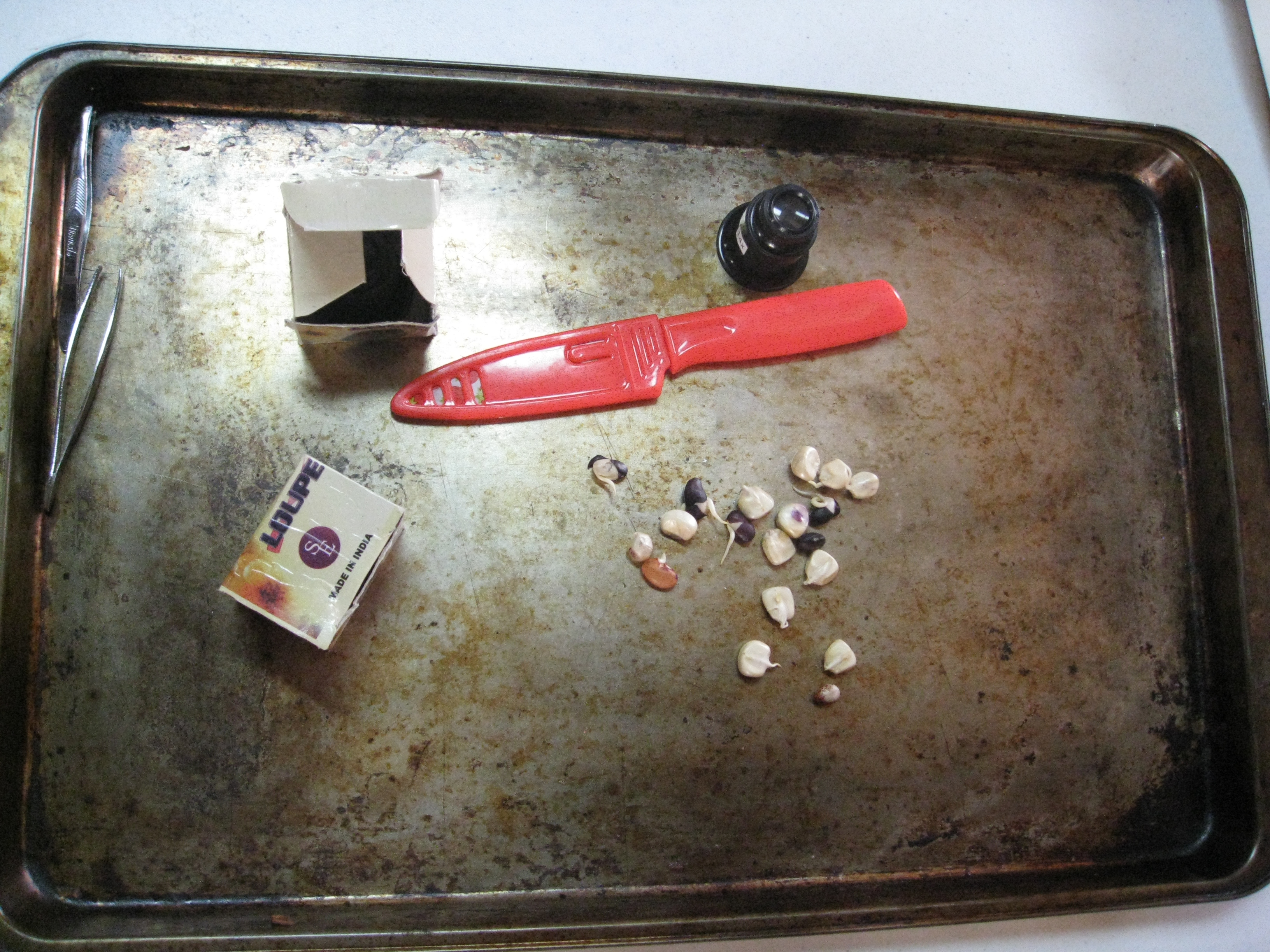 After a slide show about plant sex, we were given a tray with a knife, a magnifying loop and some seeds that had been soaked.