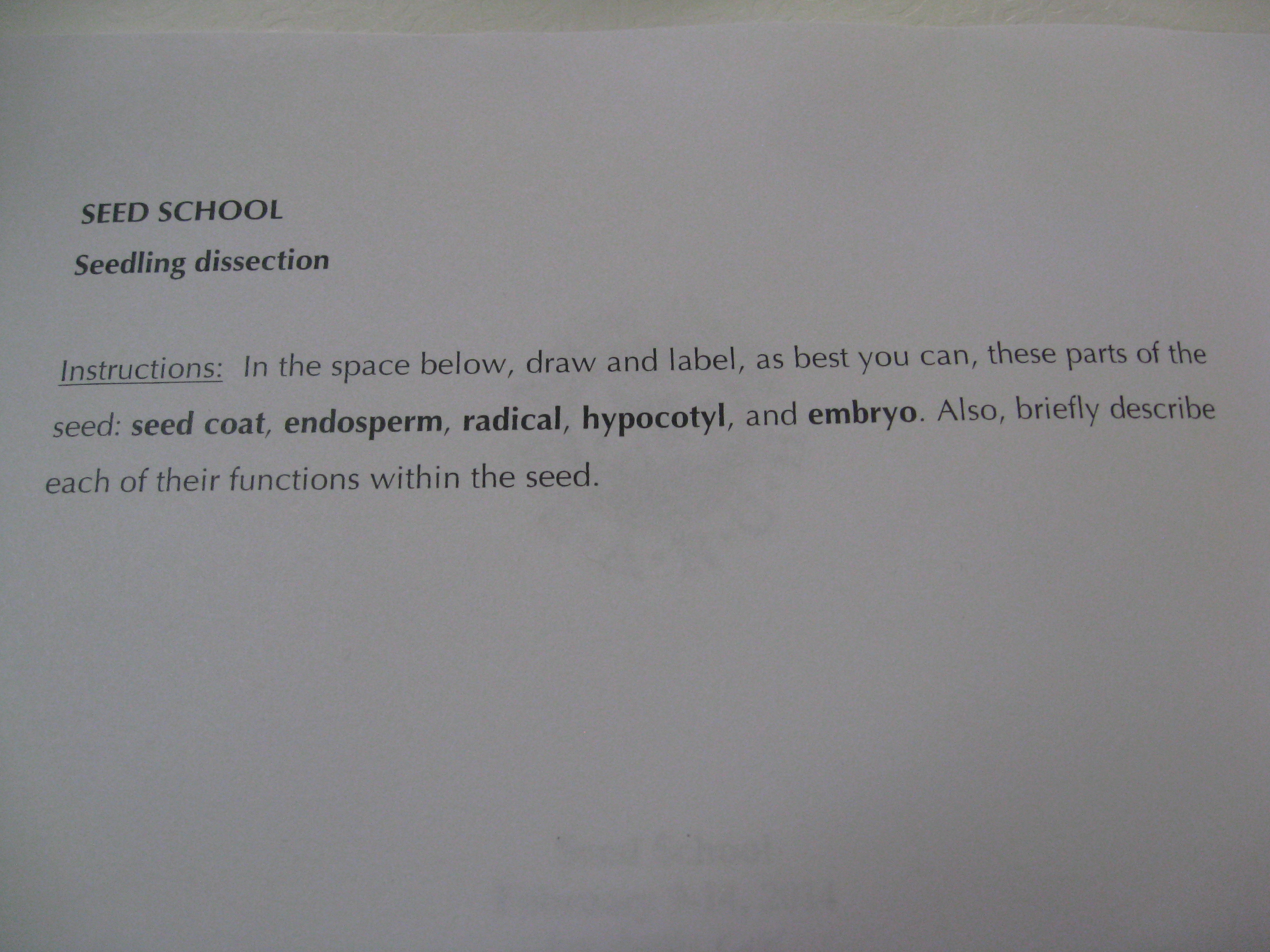 Did I mention I hated school? All those memories came flooding back. The sweaty palms, the fear of running out of time before the bell rang. All there. But my colleagues and I sallied forth and came up with most of the parts. Rather than posting my results, I’ll share this cool image of what a sprouted seed looks like through a loop: