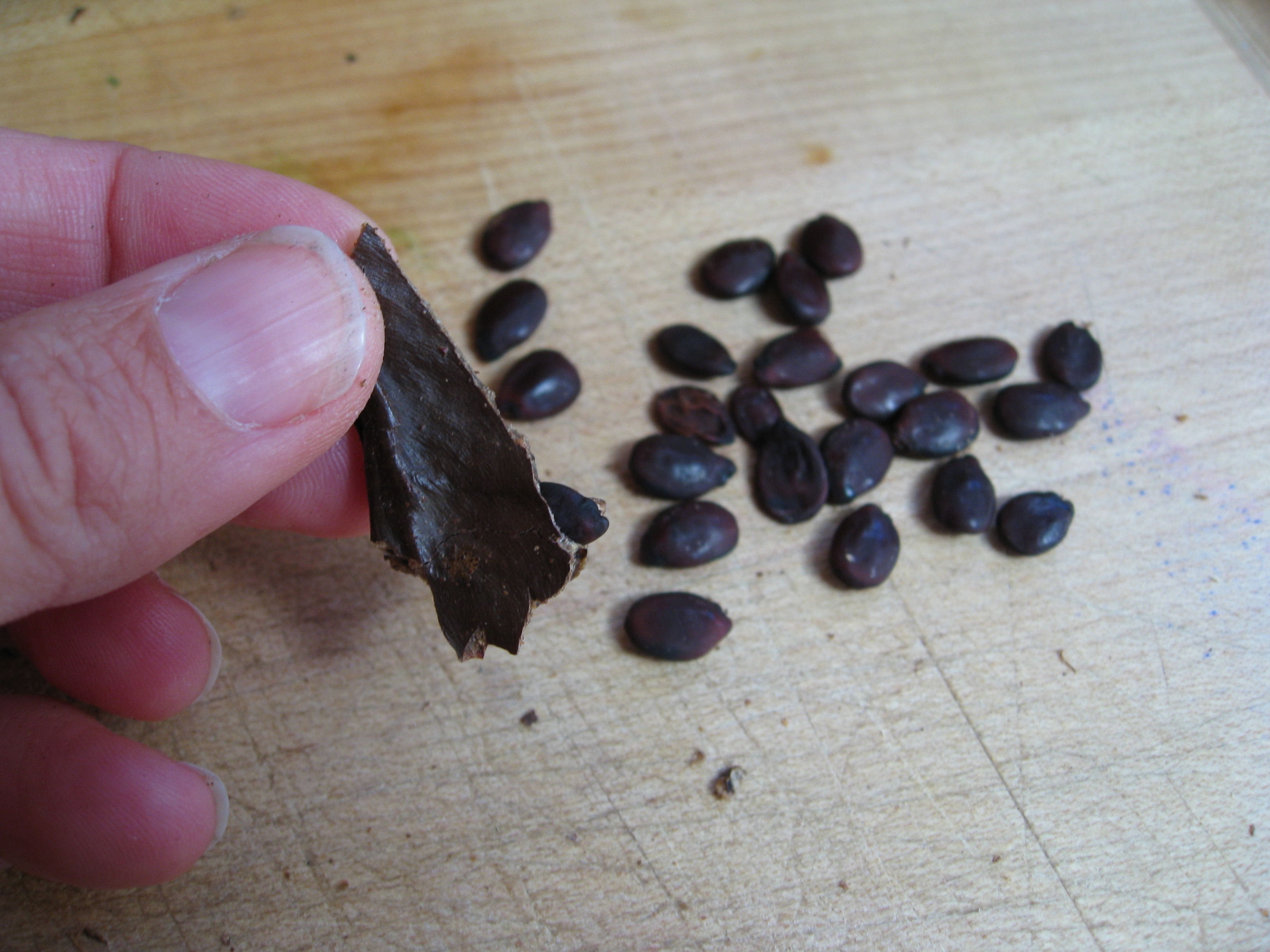 The next part is fun. We thought it would be difficult, but it actually isn’t. Again, a little research showed that cutting through the middle of the pods before smashing them made it easy as pie to access the seeds. The seeds are so hard, they don’t shatter during the process, making it easy to separate them out from the edible pods.