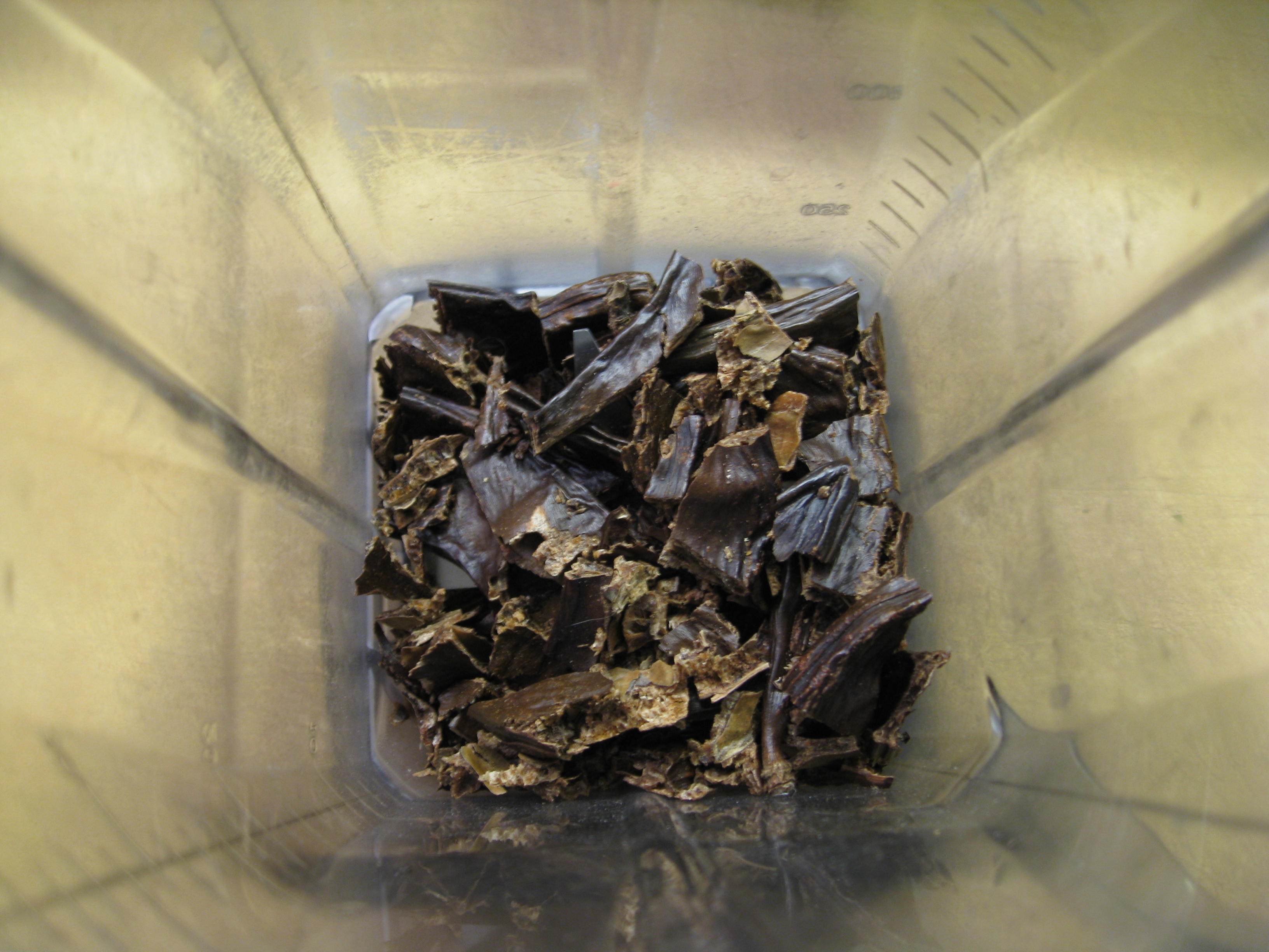 It only took a minute or two in a Vitamix to pulverize the carob beans into powder.
