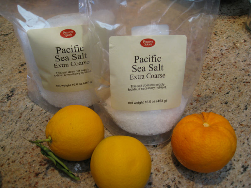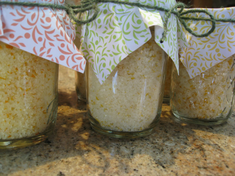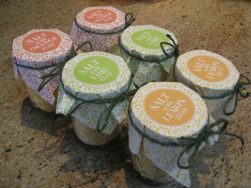 This holiday season we gave gifts from the garden, which came primarily from our citrus trees. Sunset Magazine featured an easy home made gift idea that struck a chord: citrus salt. Sprinkle it on salads, meats, and in soups to brighten flavors just before serving. Here’s how we did it.