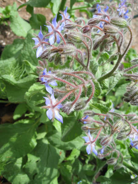Borage attracts bees and other beneficials to the garden.