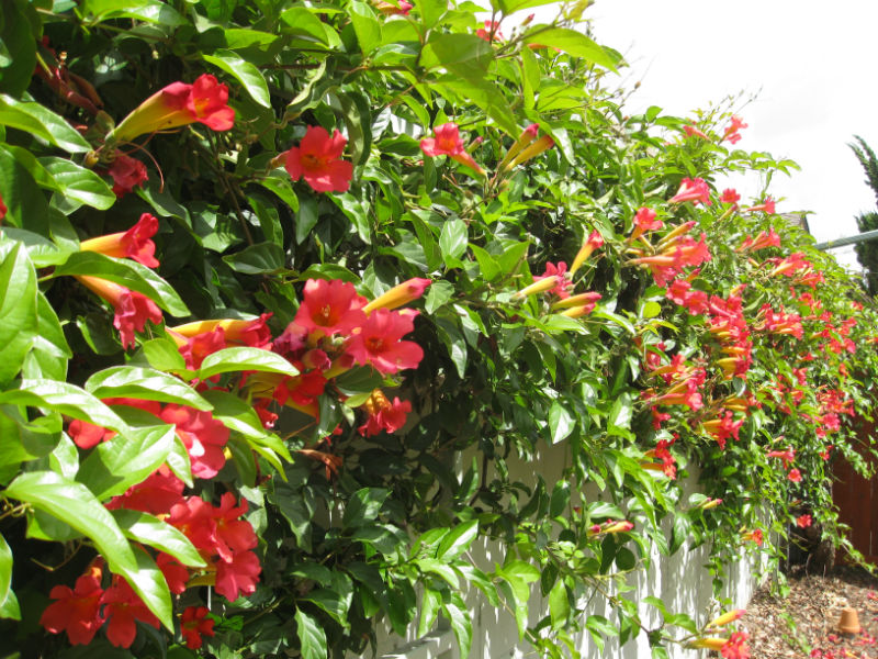 Our Trumpet Vine is going crazy right now. The hummingbirds love it, as do our bees.