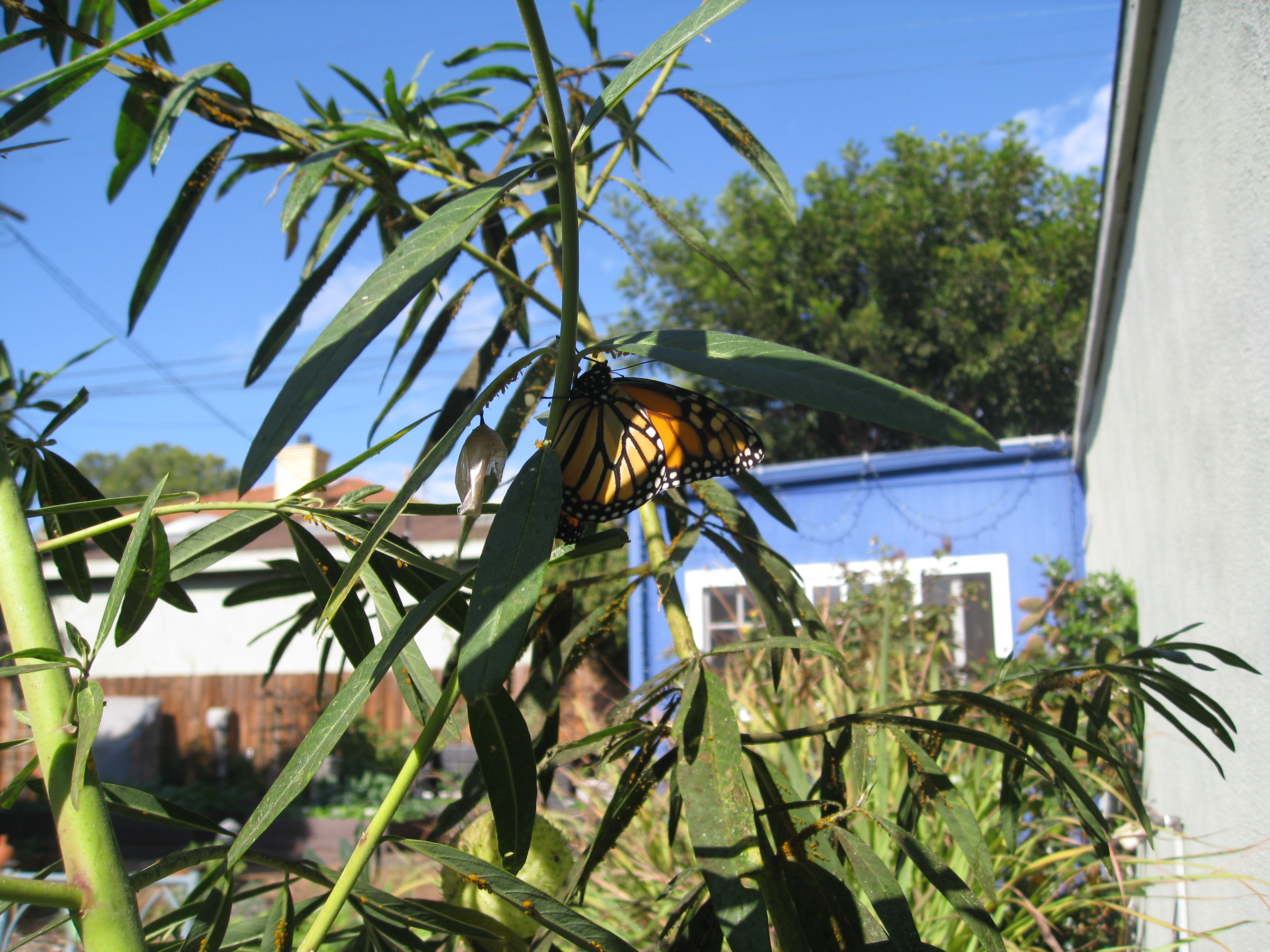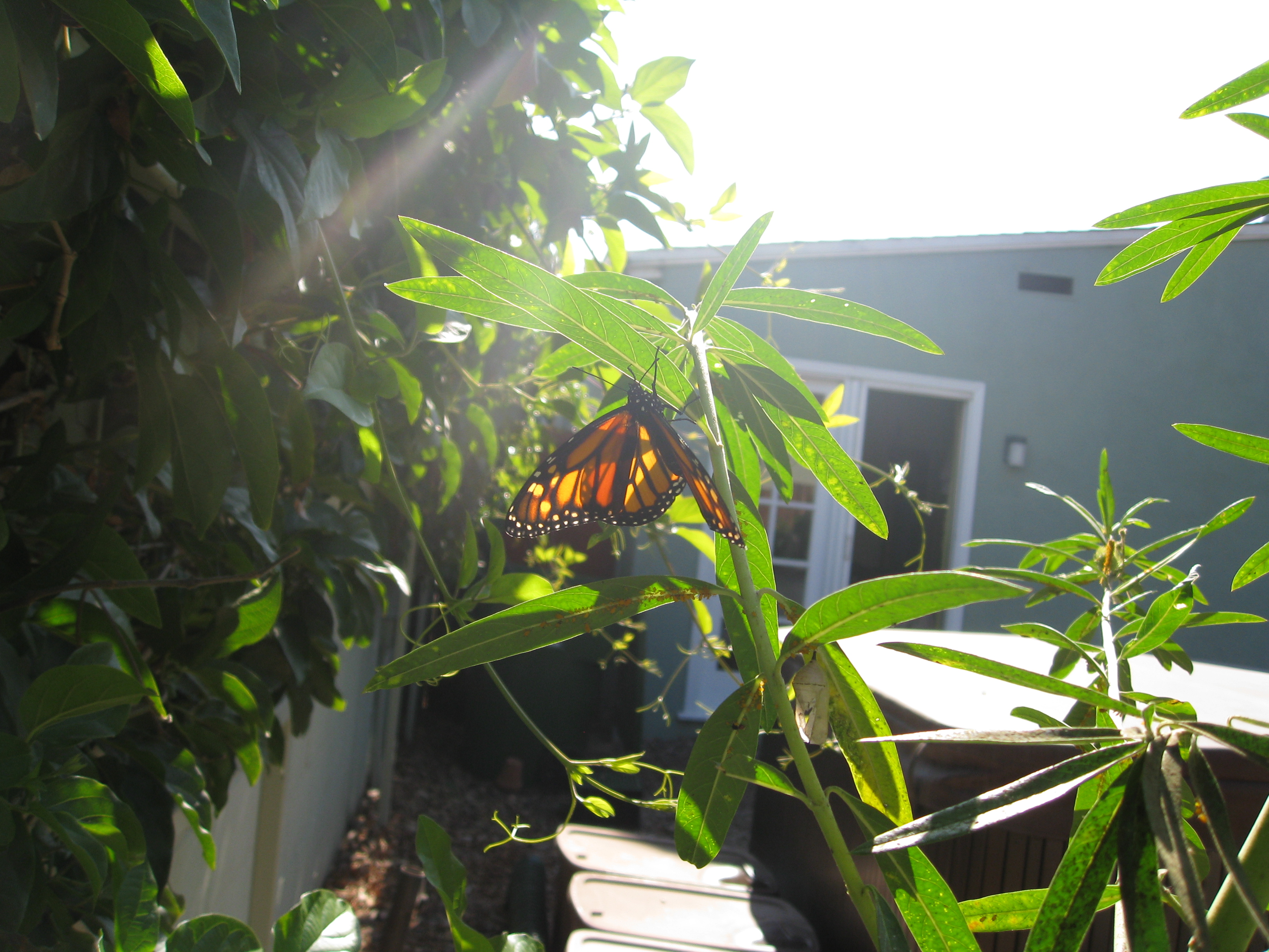 For those who have been following our recent visitors to our milkweed plants, we have some exciting news. We were fortunate enough to catch the transformation of Monarch butterfly from caterpillar to cocoon to butterfly last week. (If you want to catch up, click the link above to go back to the beginning).