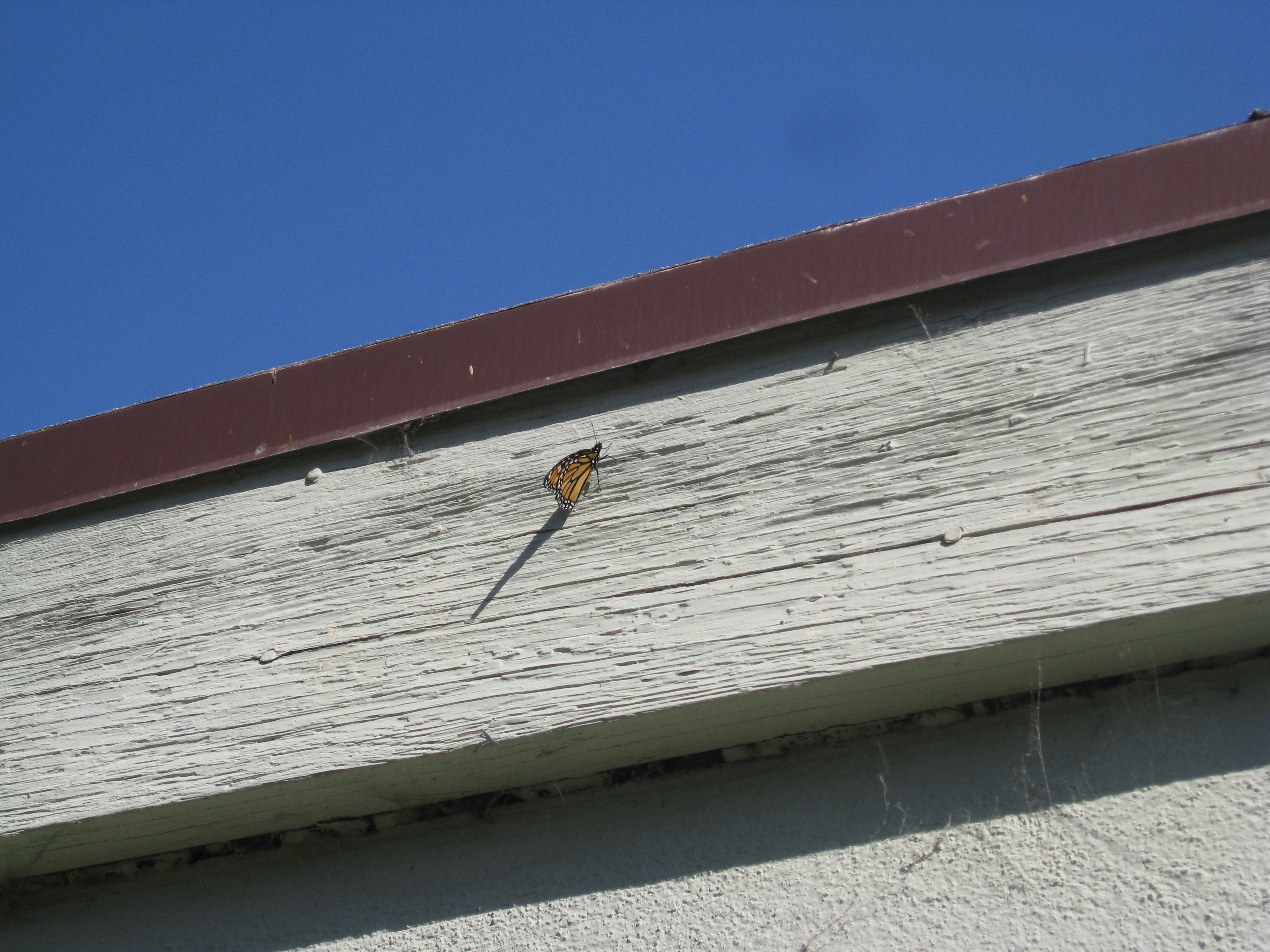 Another hour or so later, our butterfly was ready to leave. We caught one last photo at the top of the wall, before it left to continue its journey north.