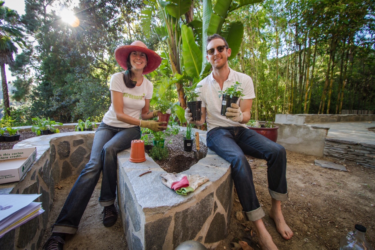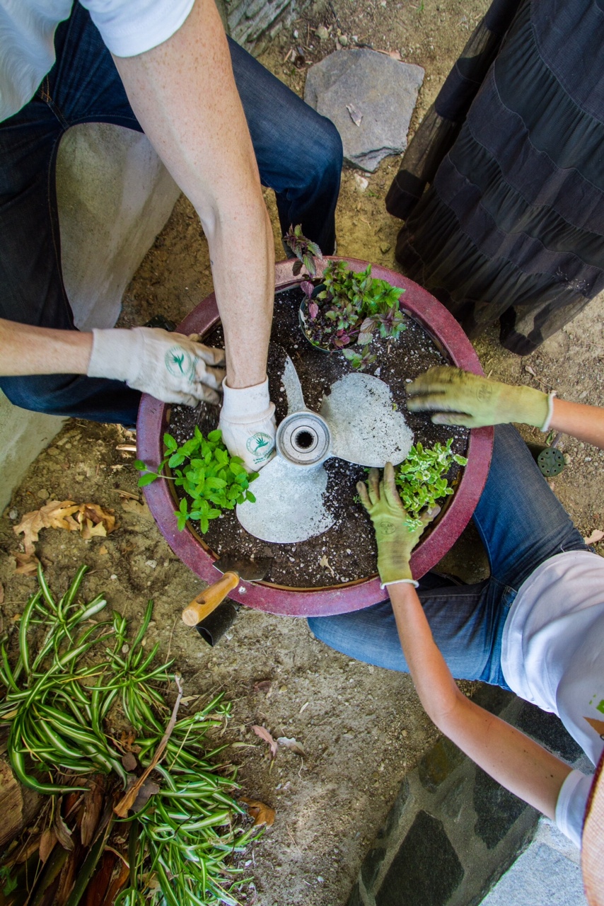 Jesse and Gardenerd, planting herbs. Photo by Sarah Haywood.