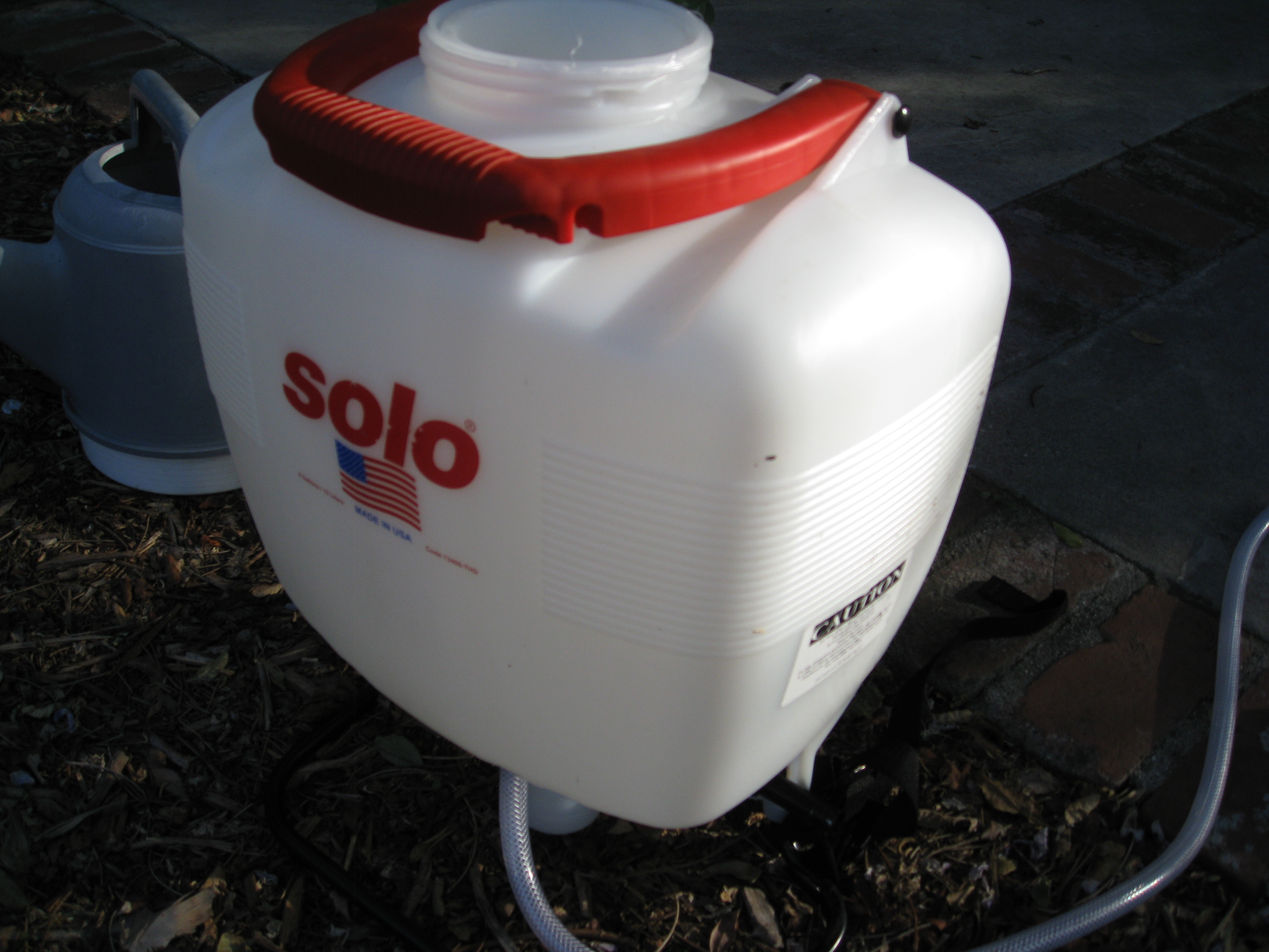 We chose the Solo 4-gallon piston-pump backpack sprayer that was recommended among colleagues during the Soil Food Web course. It took a few minutes to assemble and we we’re off and running.