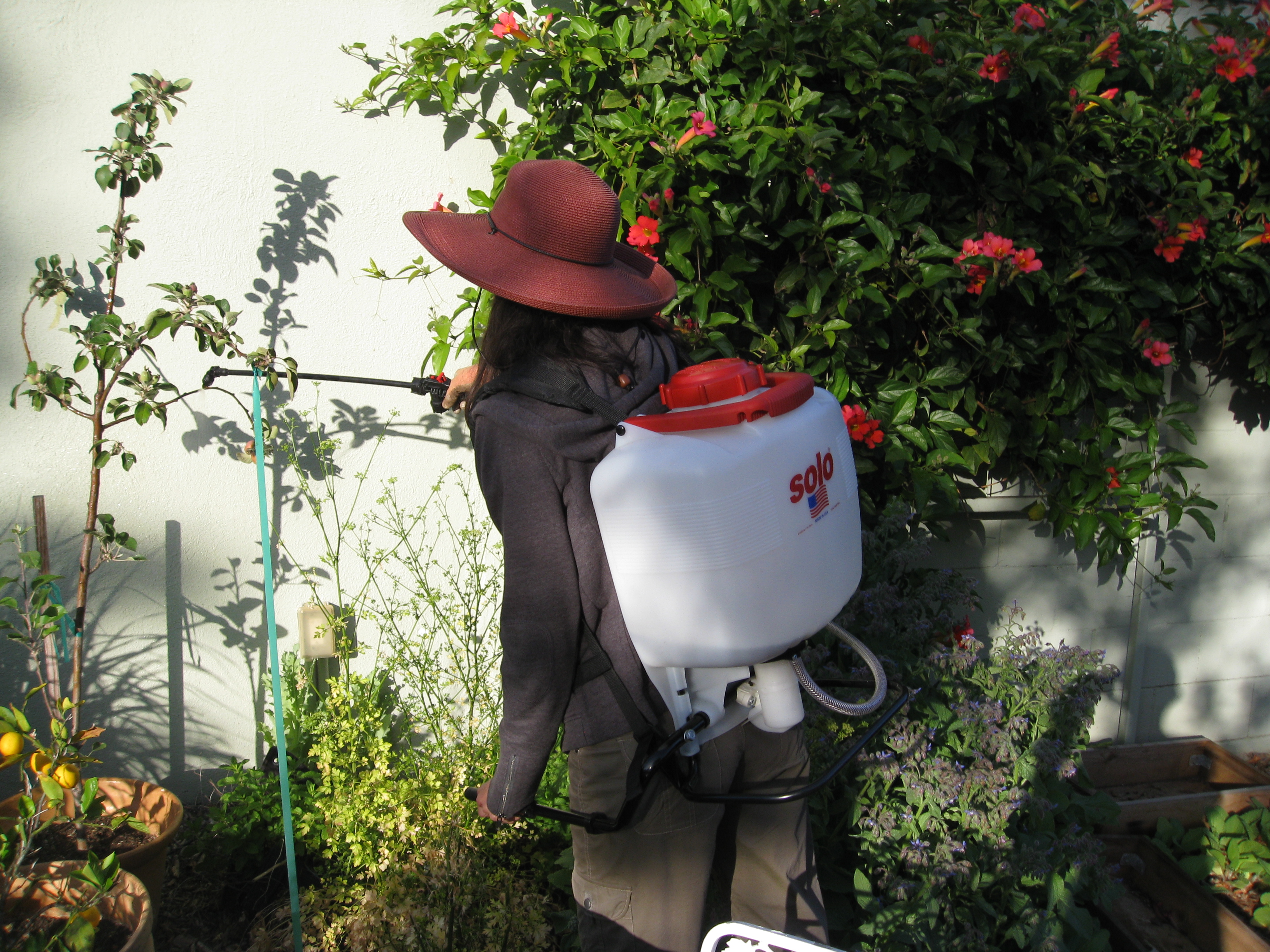 Last year after taking Dr. Elaine Ingham’s Soil Food Web intensive, I ran out and purchased a piston-pump sprayer to take my compost tea to the next level. Compost tea is great for plant roots and soil health, but it also makes a great foliar feed (using said compost tea sprayer). Plants respond with a jump in growth, and a reduction in surface- or soil-born fungal infestations.