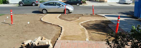 We had a flurry of jackhammers and 3-foot deep trenches in recent weeks. New plumbing (for proper drainage away from the house) and a sump pump were installed. We also had irrigation to all the major watering areas installed.
