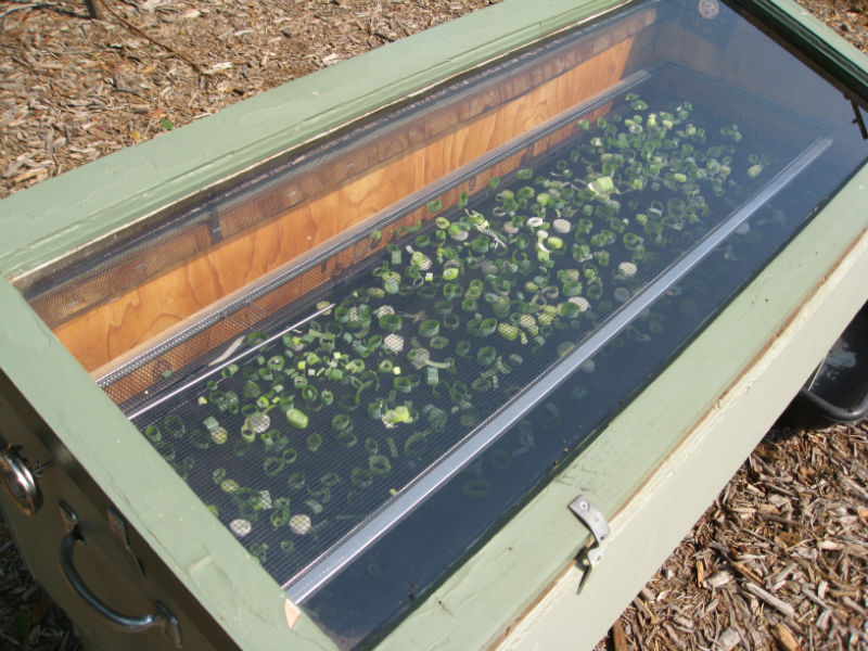 Green Onions drying in the solar food dryer