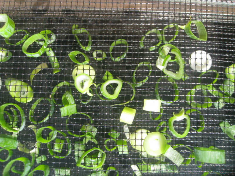 2 layers of green onions drying out