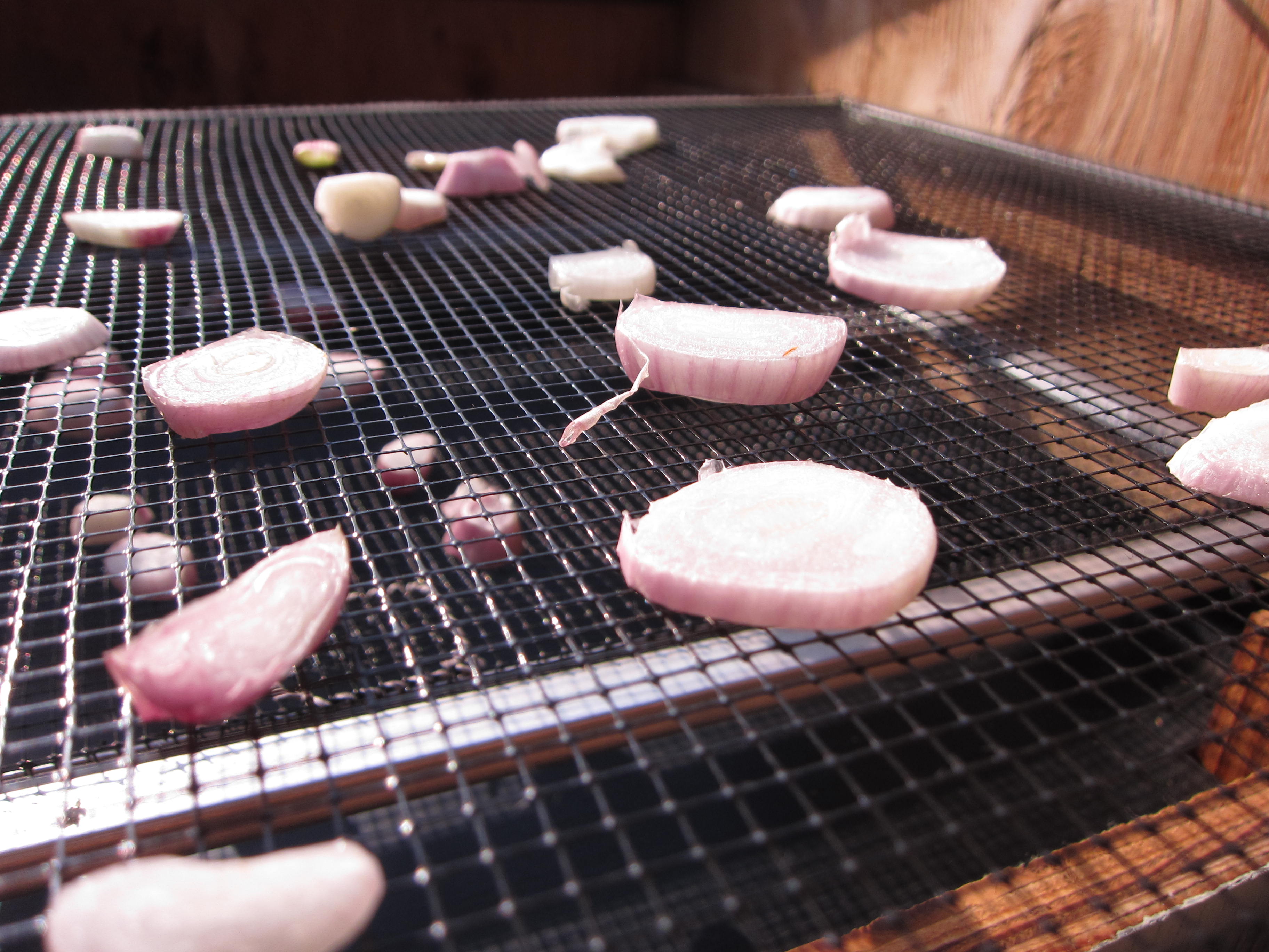 Shallots are a luxury. They’re expensive and they don’t store for long. So we grow them ourselves. But when it’s time to harvest, that last part (about not storing for long) becomes an issue. Enter our solar food dryer. Preserving shallots is easy when you dehydrate them.