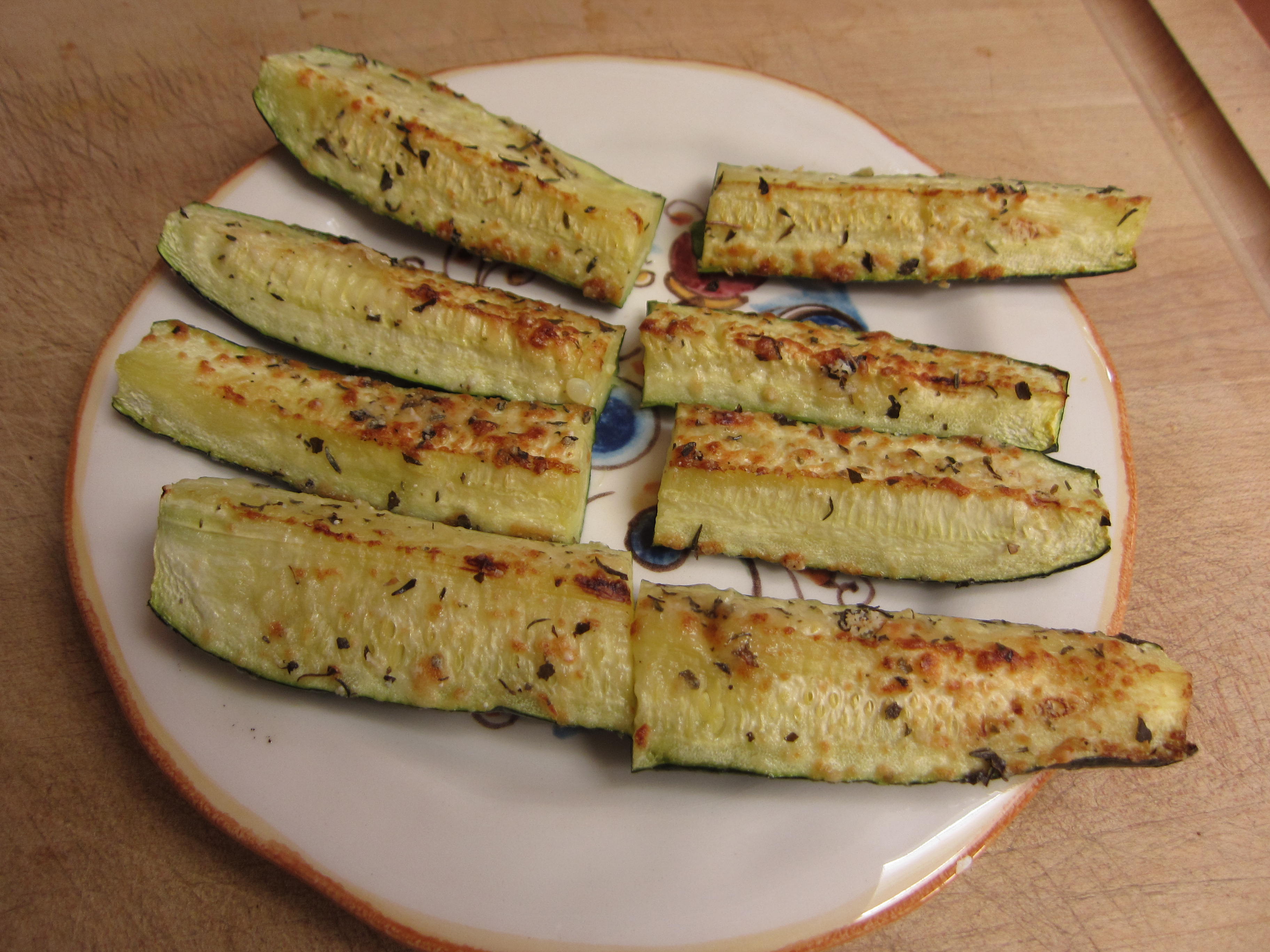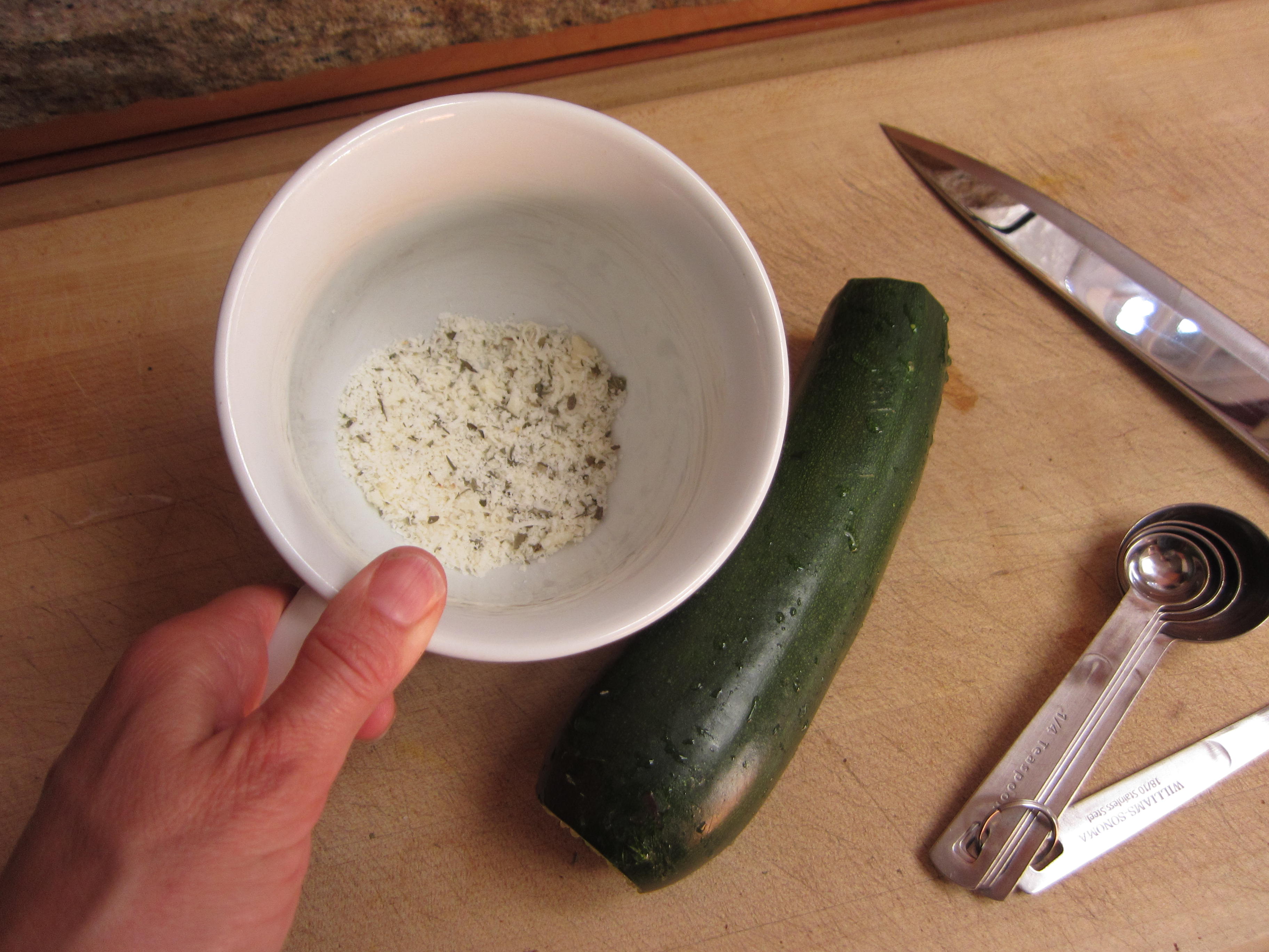 We quartered the recipe for a low-commitment experiment. It worked well with just one zucchini. The smaller the zucchini, the more crisp they will become. Ours were average-sized so there is still a lot of moisture to these fruits once cooked. Tasty though!