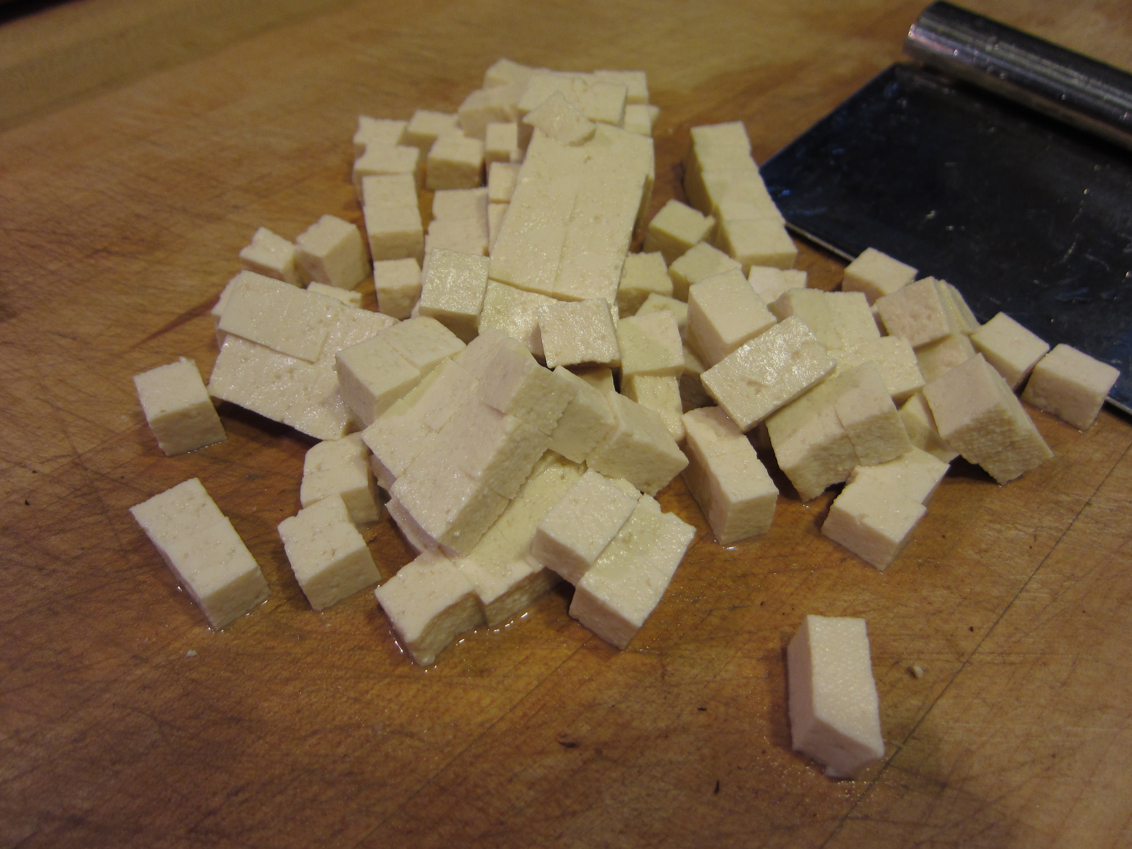 Bring the mixture to a boil, then reduce to low heat and add the tofu. Simmer for 15 minutes, then stir in the vinegar and cayenne to taste.