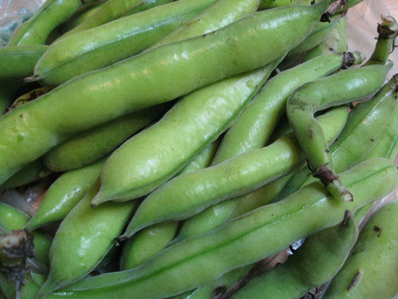 Shell fava beans from the pod and bring an inch or so of water to a boil with a pinch of salt. Add fava beans and cook for 3 minutes. Meanwhile prepare a bowl of ice water.