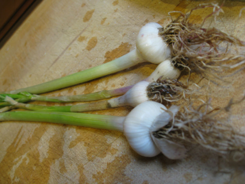 Garlic harvested early is green garlic. It can be chopped up like shallots