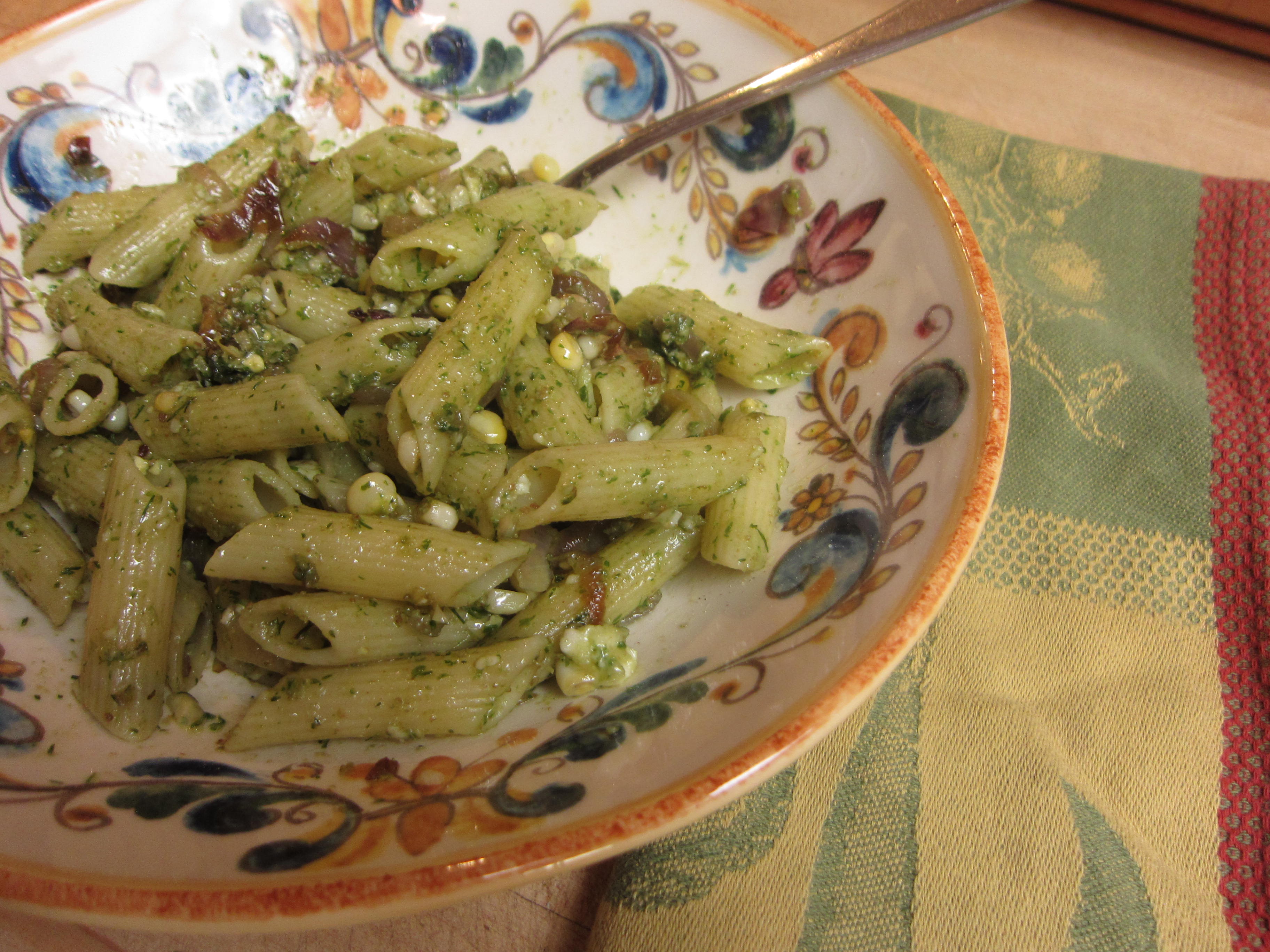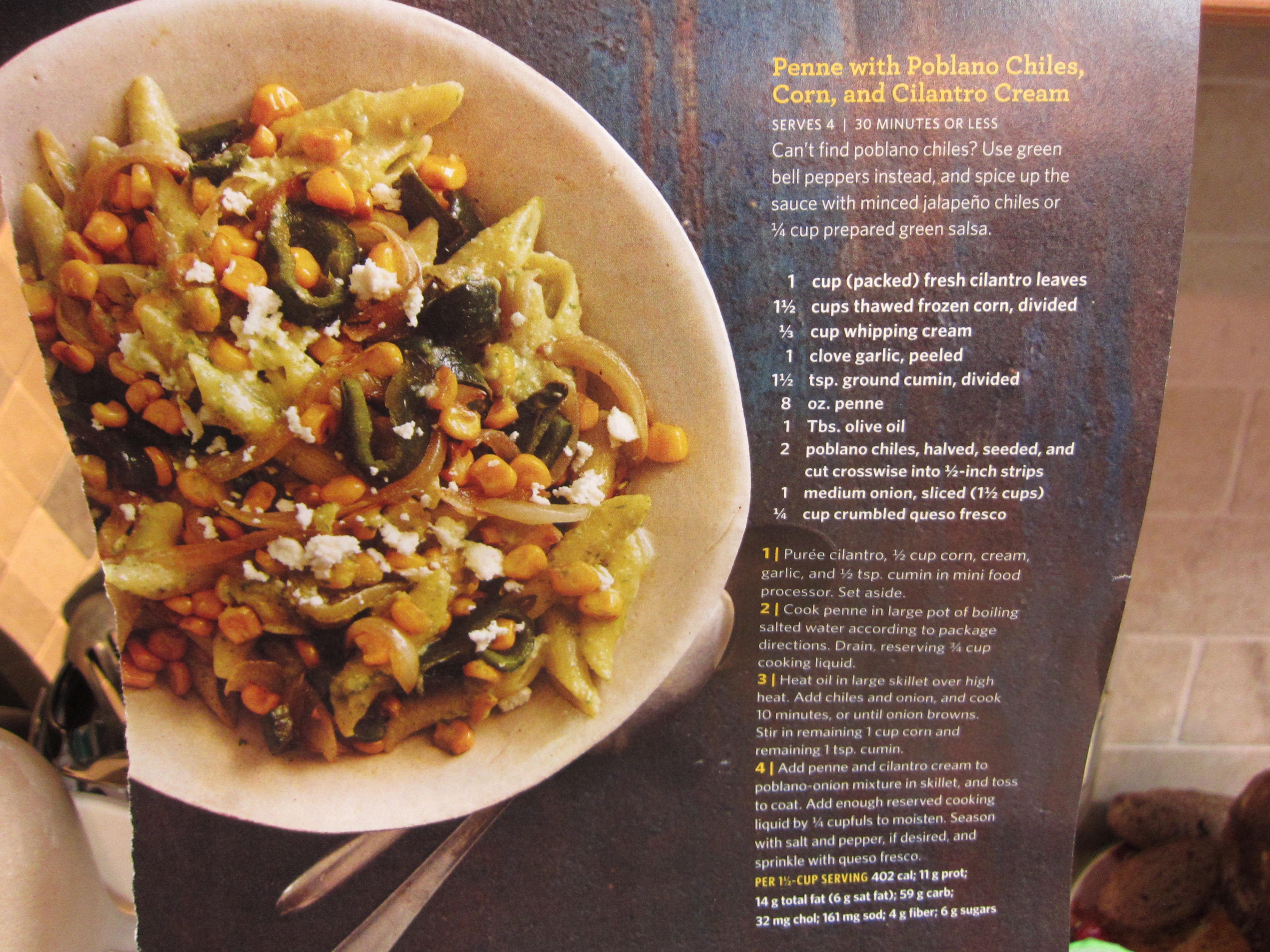 Penne with Poblano Chiles, Corn, and Cilantro Cream