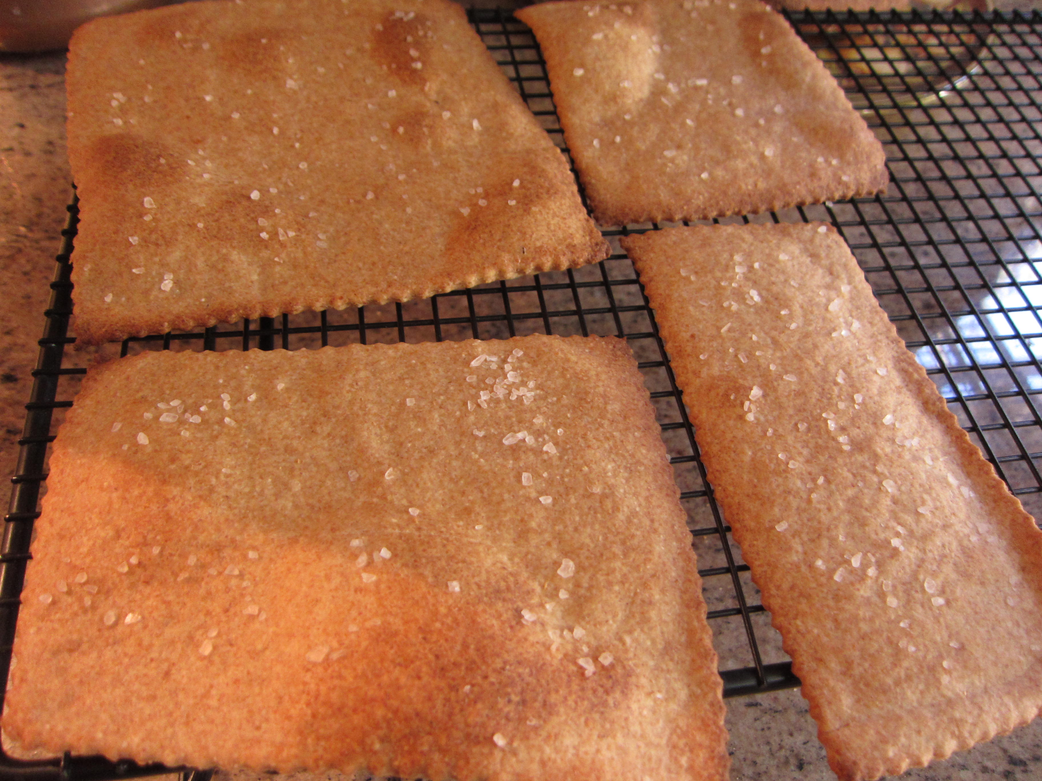 Cool crackers on racks while you bake the other batches. See, larger crackers are much easier to transfer to cooling racks. Now, if your crackers aren’t crisp enough, you can reduce your oven temperature to 200° and put the crackers straight on the oven racks for another 15 minutes to dry them out completely. (This tip came from my bread mentor, Dana Morgan). Leave the door open a crack during the process.