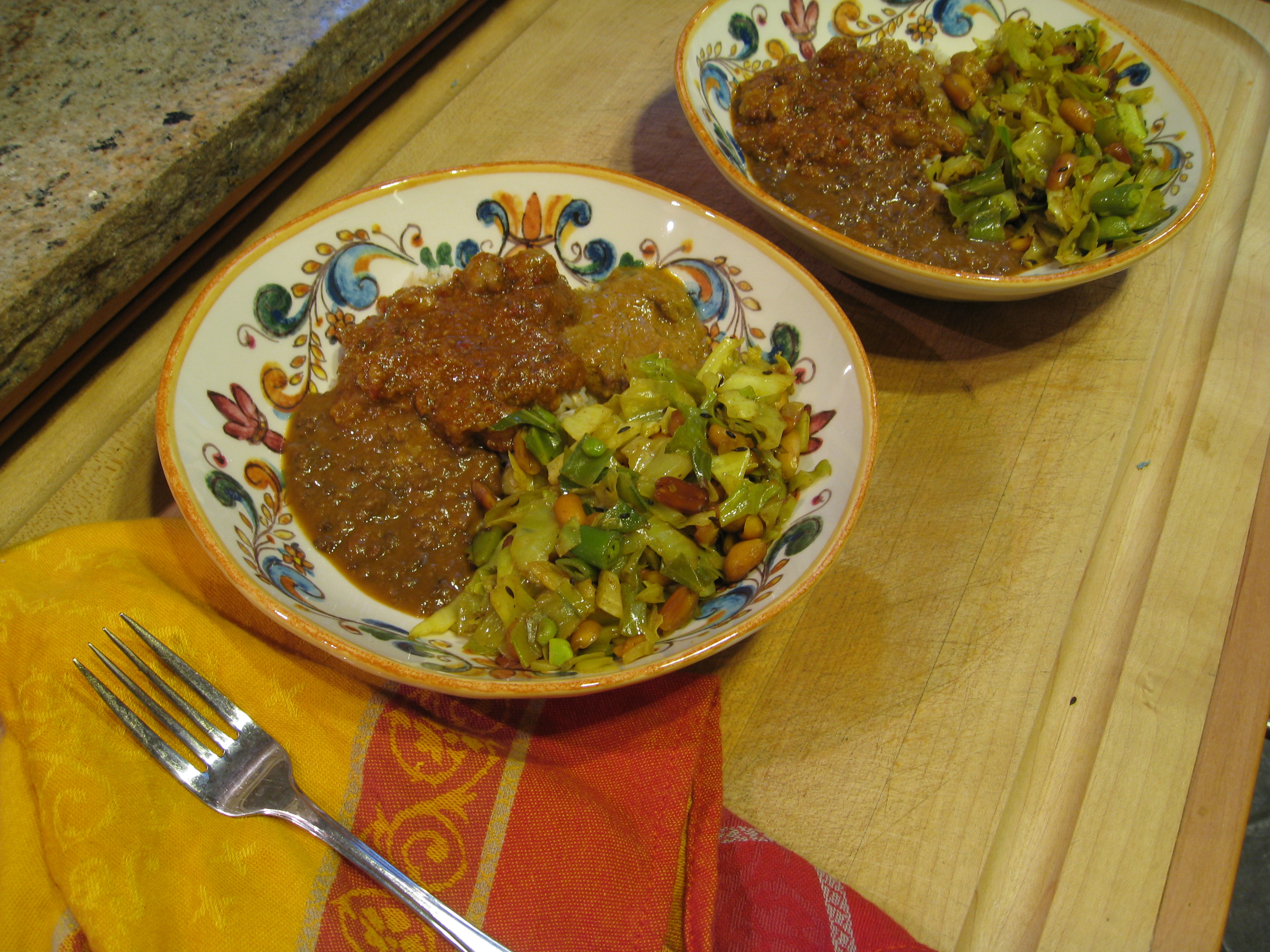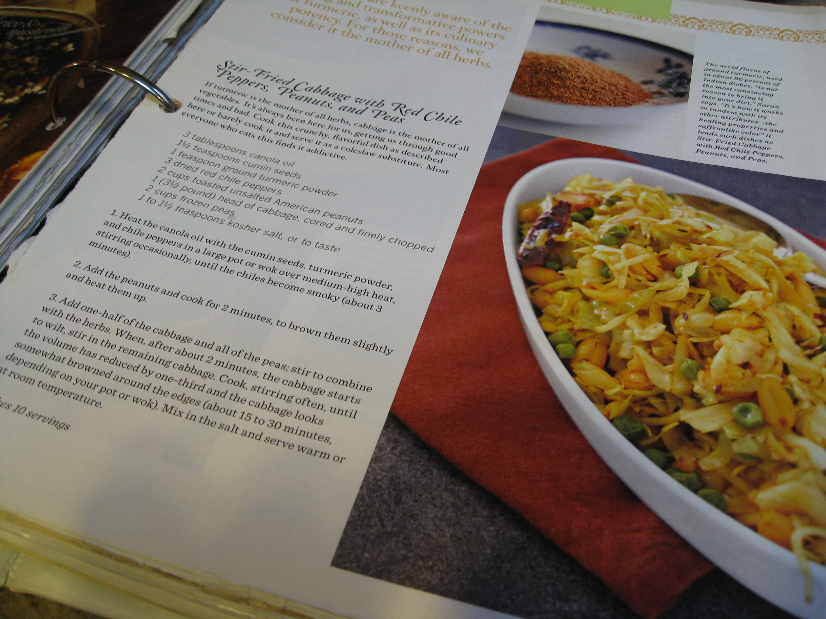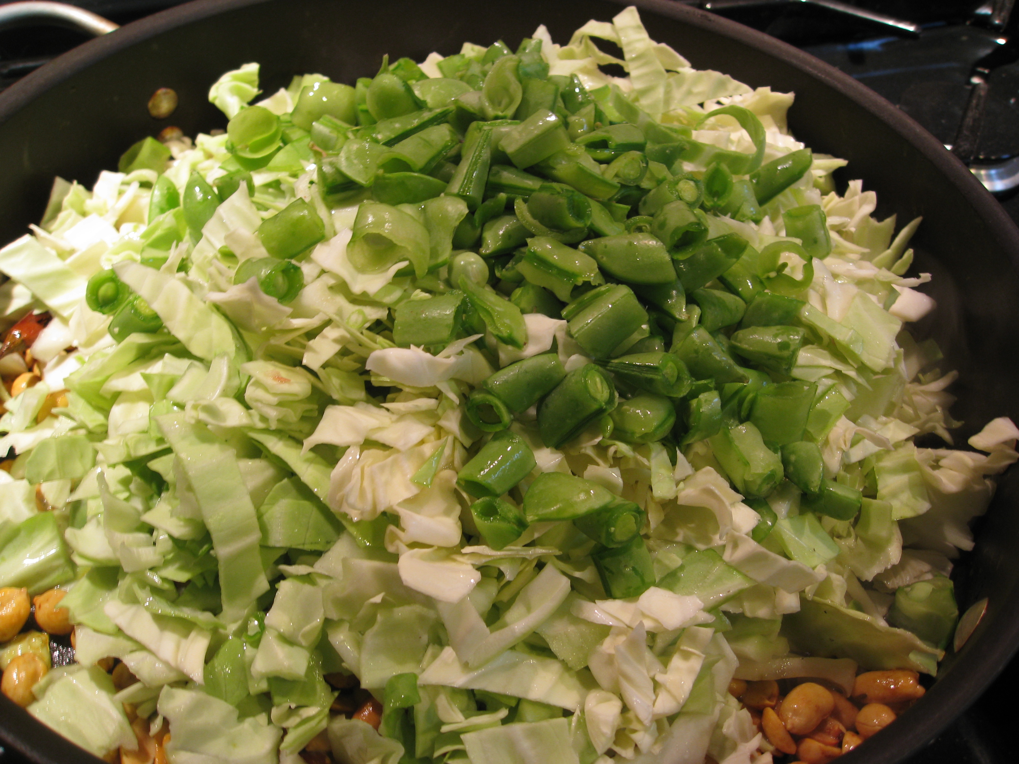 Stir-Fried Cabbage with Red Chile Peppers, Peanuts and Peas – Organic Gardening Magazine, Dec. 2010 (Issue 58:2) – Serves 10 very small eaters or 4-5 hungry folks