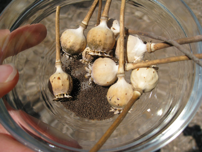 Poppy seeds are tiny, so be sure to collect them in a bowl. Or just sprinkle them back into the garden. The seeds require light to germinate, so you don’t even need to bury them. It’s that simple.