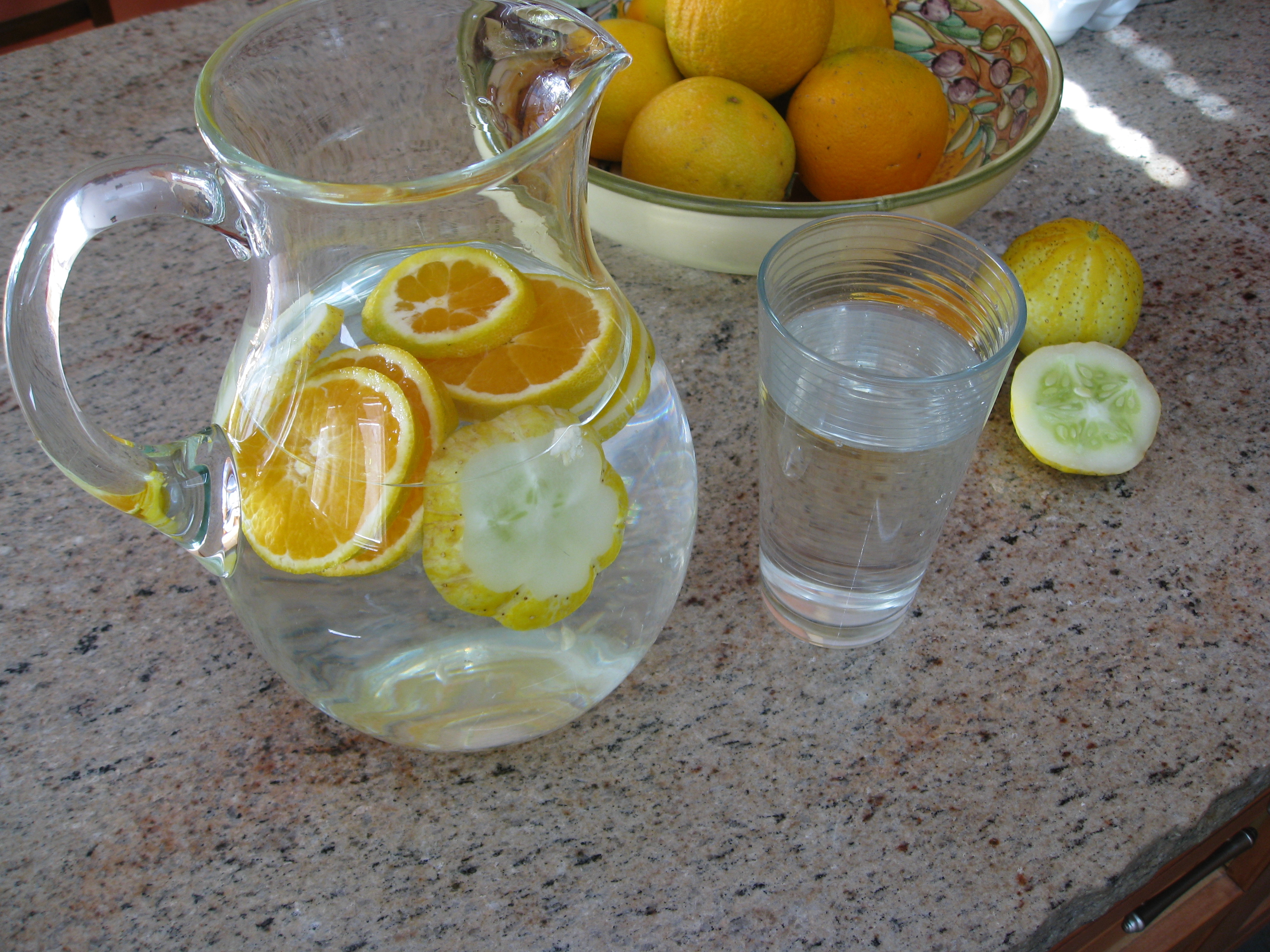 Drinks – Throw a handful of mint into your lemonade. Make sangria by adding sliced plums, nectarines, oranges and limes to red or white wine. Add a little honey to sweeten the blend and enjoy. Our favorite is cucumber citrus water–no cooking required. Just add slices of cucumbers and oranges to a pitcher of water and transport yourself to a spa.