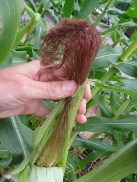 You’re looking for the Milk Stage – when white liquid comes out of the kernel when pierced. It’s ready to pick if you see that. If it’s clear liquid, wait a little longer. If no liquid comes out then it’s past its prime and should be allowed to dry completely for cornmeal.