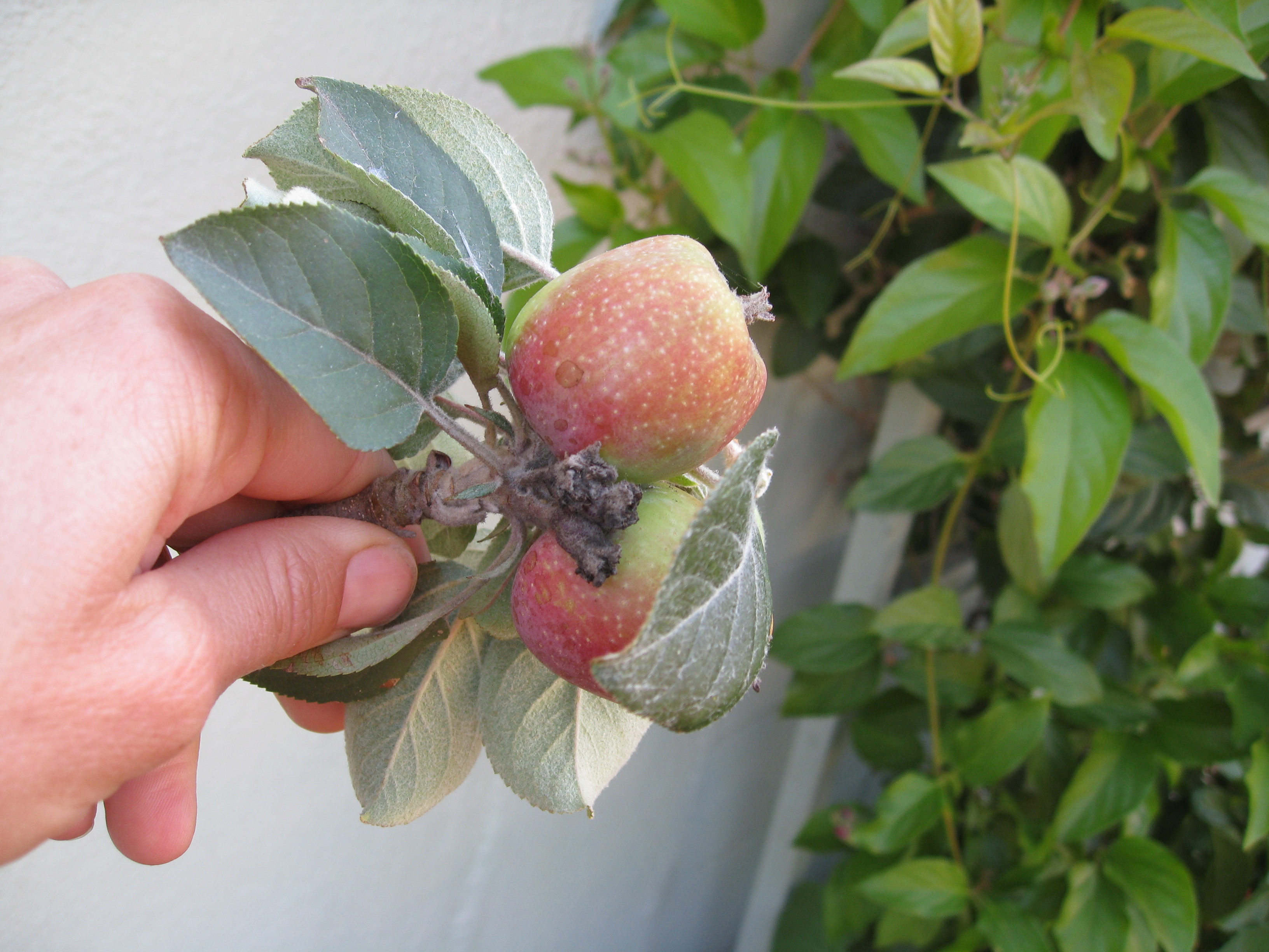 Apple experts recommend thinning fruit to 1 or 2 per cluster of fruit. Use the iron fist of pruning, as we say, and get the job done.