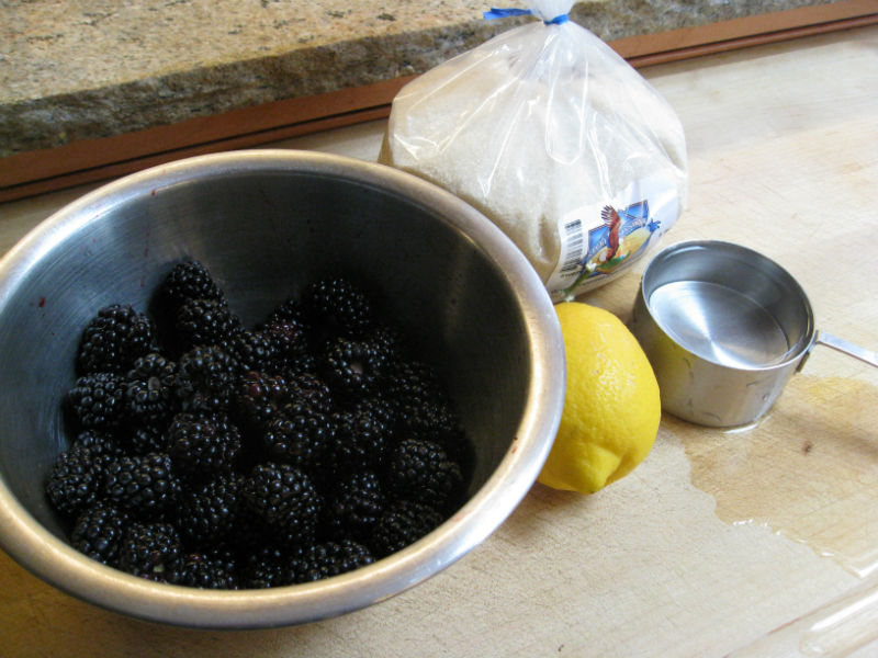 In the end, we used ingredients on hand: lemons from the mini-orchard, blackberries from the garden, organic cane sugar on hand, and filtered water. Simple, delicious and free.
