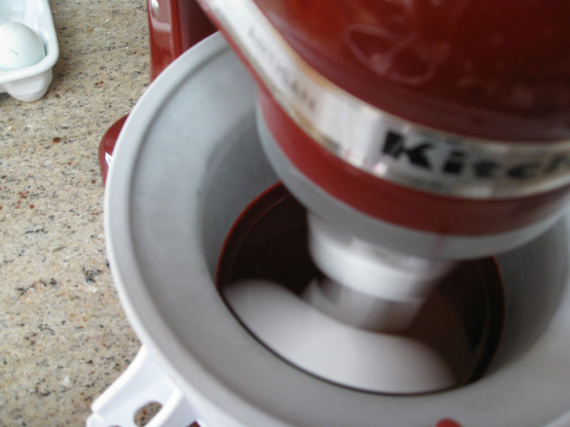 Pour the chilled mixture into an ice cream maker. If you don’t have one you can freeze it in a metal pan and stir it every few hours until firm.