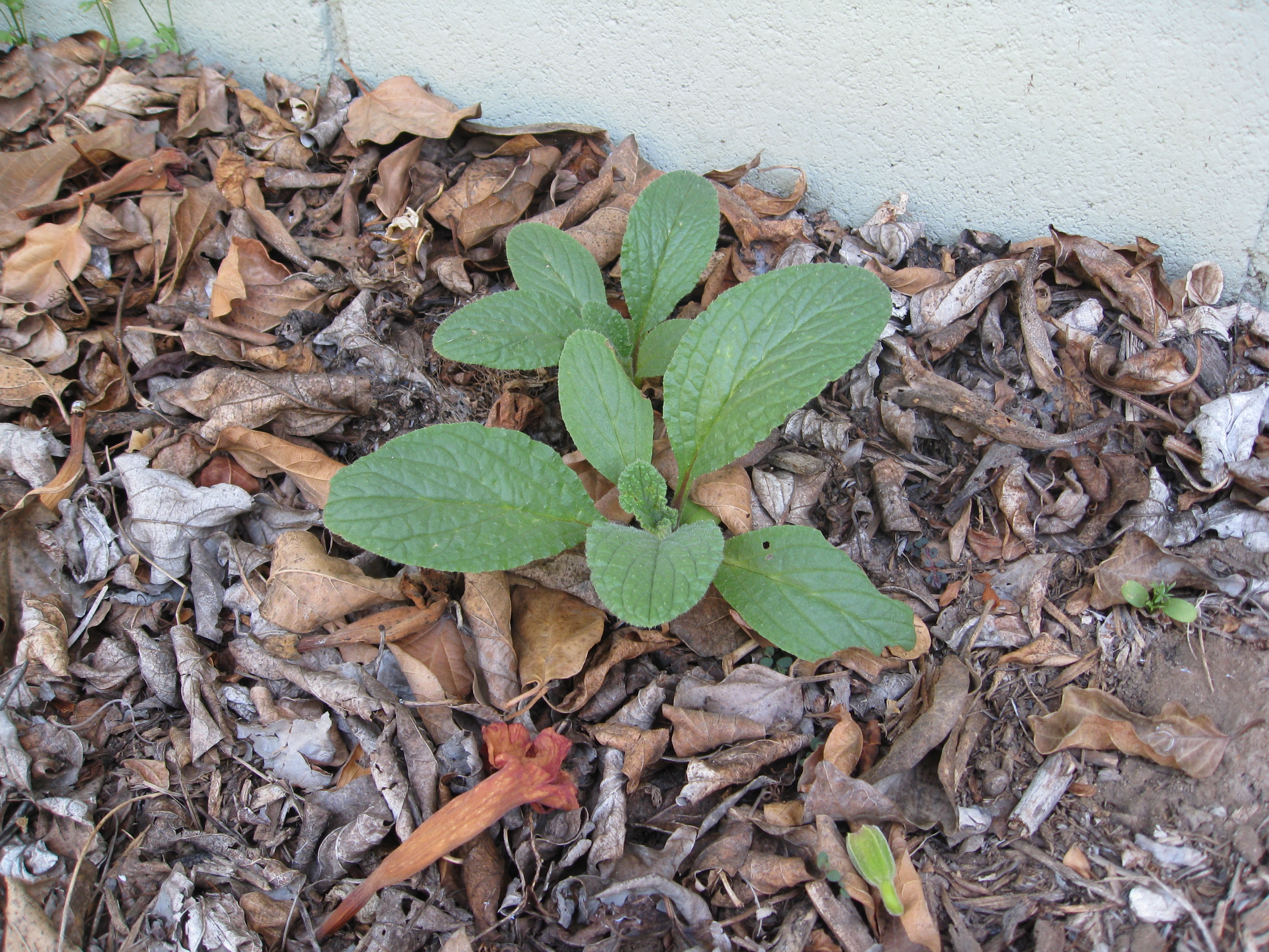 An old pot from a dead Mexican Bush Sage suddenly sprouts Orach Mountain Spinach. Not complaining, just baffled.