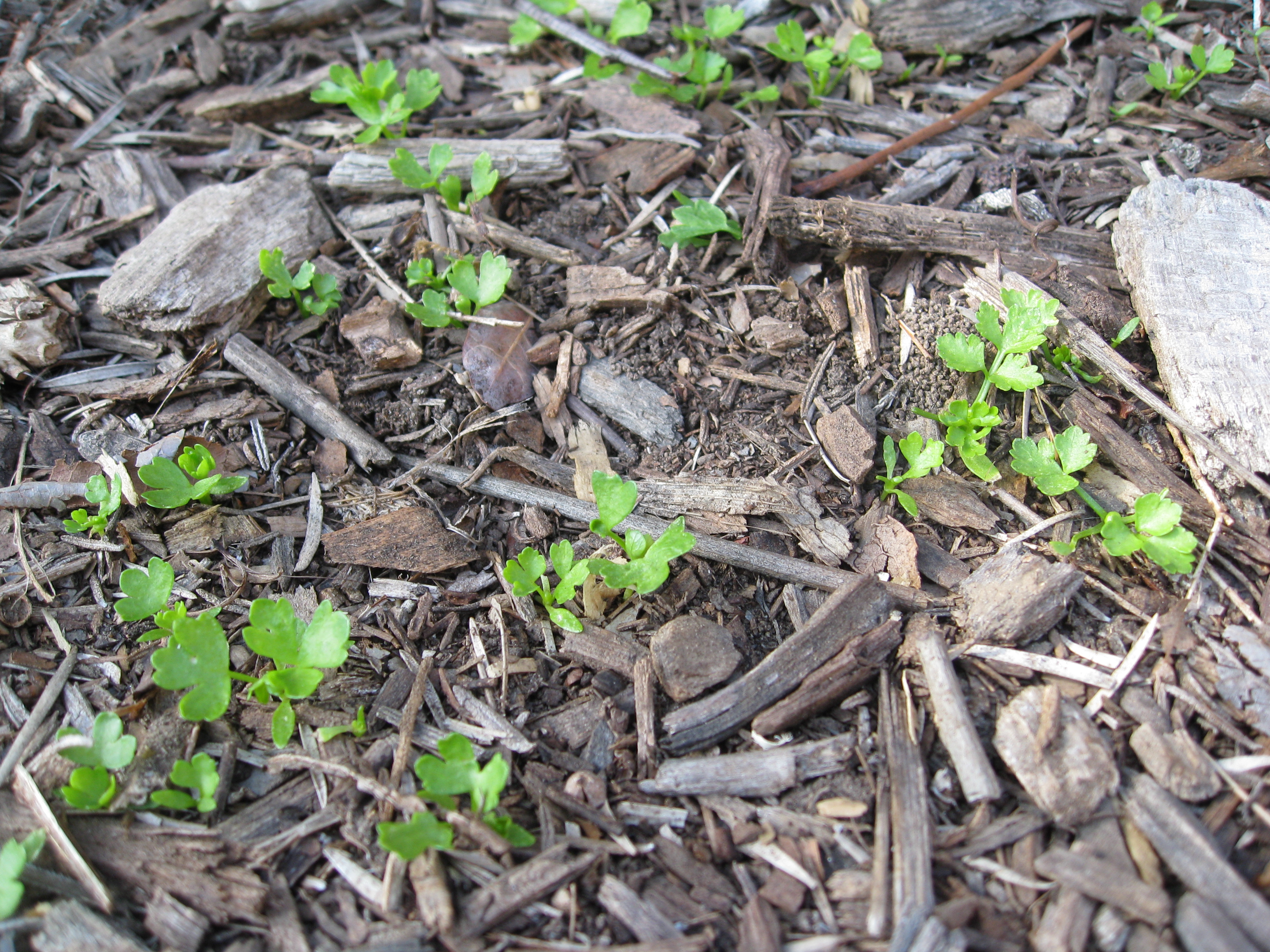 While tossing some celery that had gone to seed into the chicken coop, we must have dislodged some seeds here.