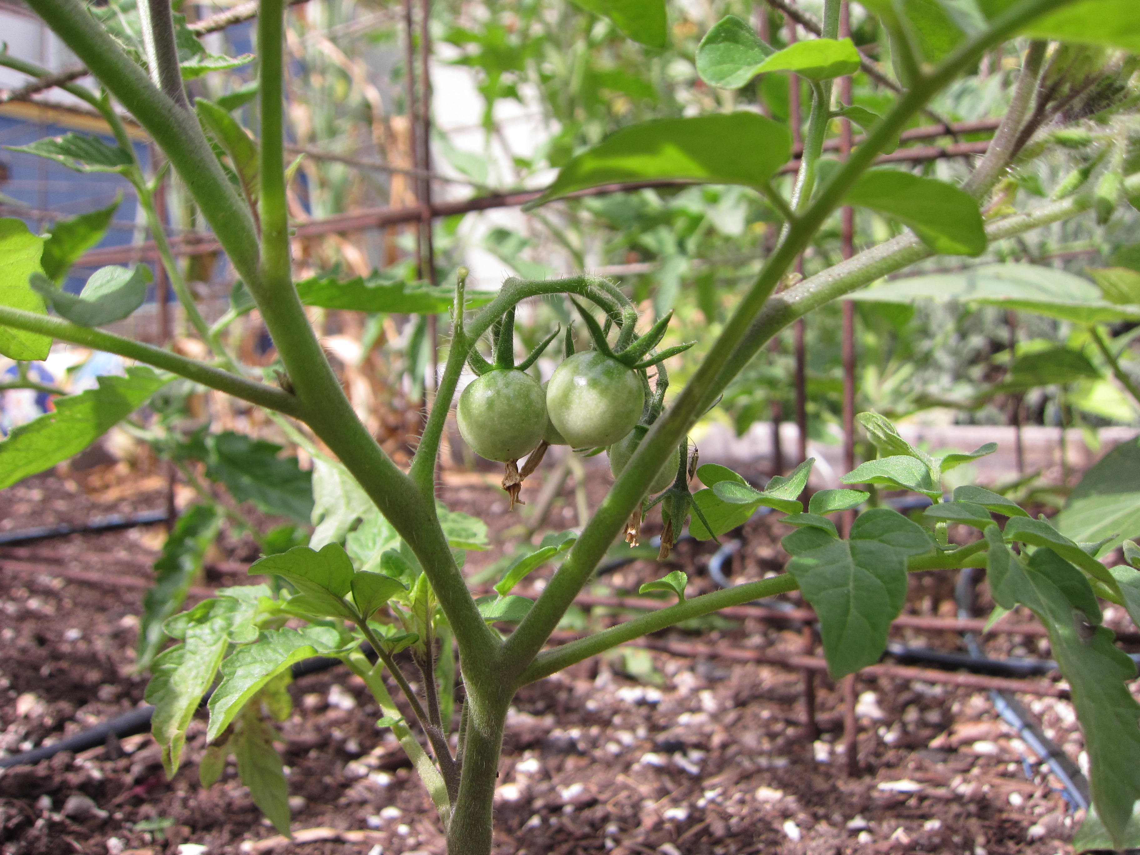 Finally a few tomatoes! This is a landrace tomato grown by a woman named Tess (we met at the Heirloom Expo). Tiny grape tomatoes on a tiny bush. We’ll see how they turn out.