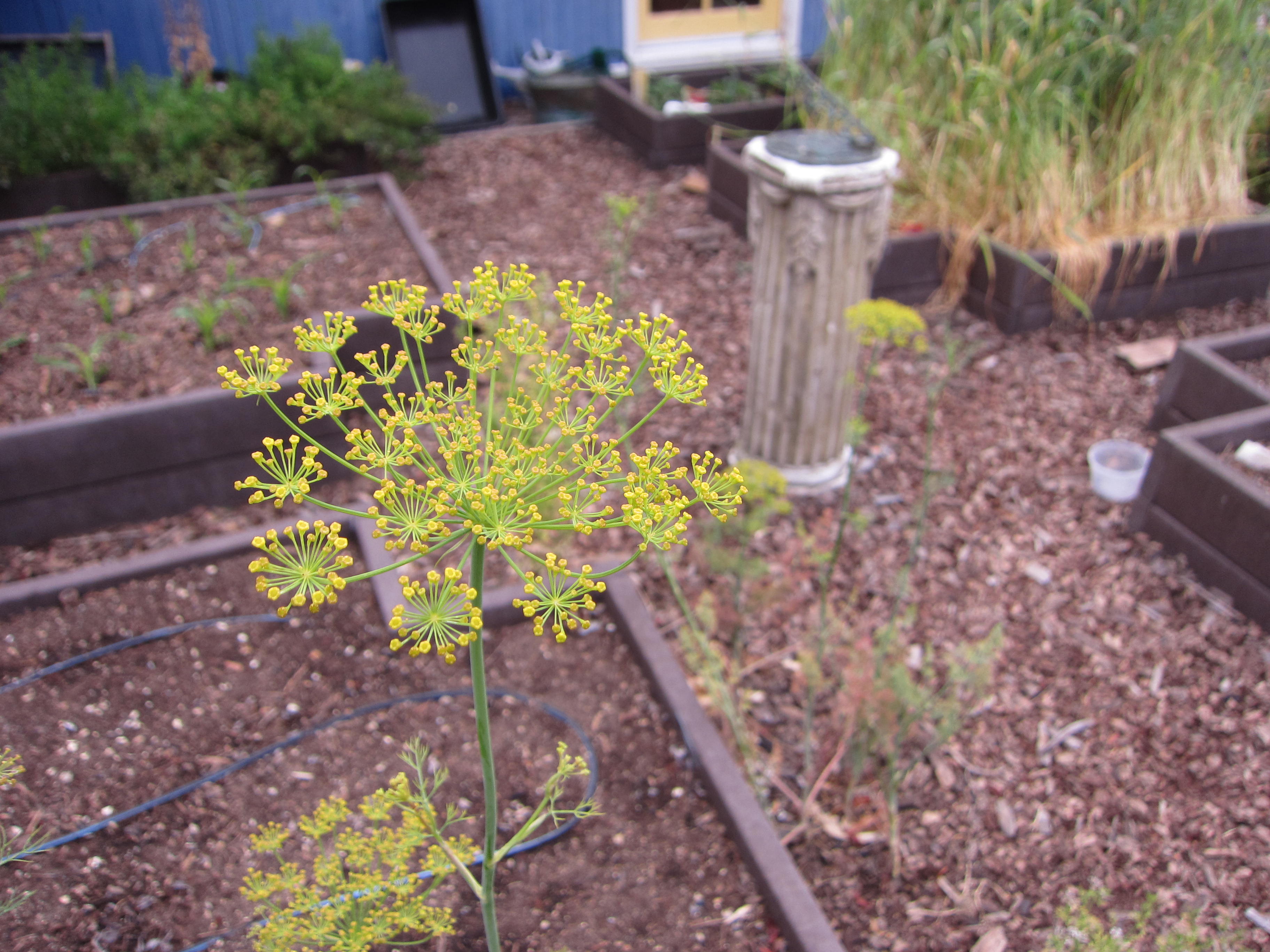 Another volunteer – dill makes a beautiful flower and attracts beneficial insects to the garden. We’ll toss the seeds into corners of the garden to continue the tradition.